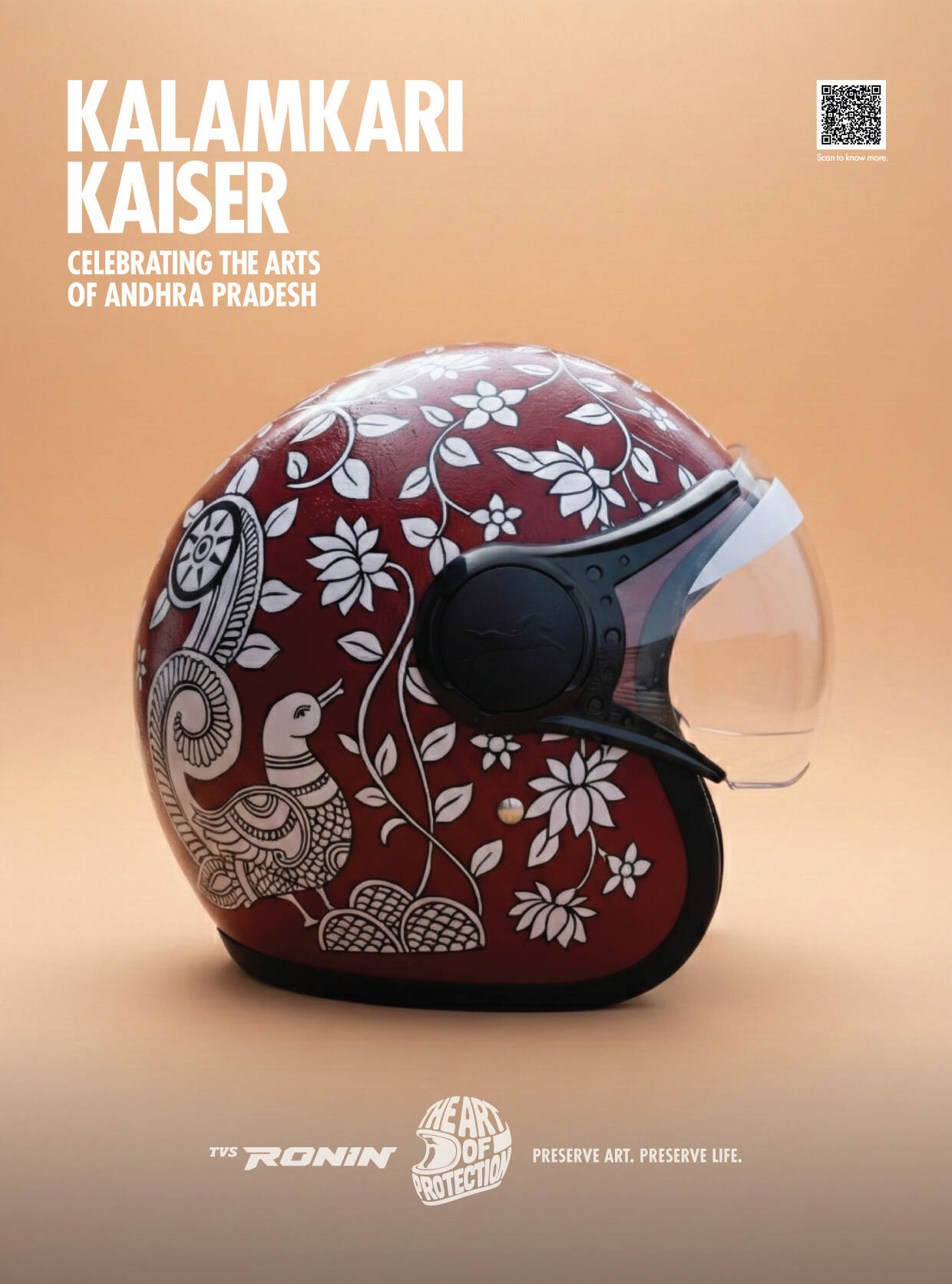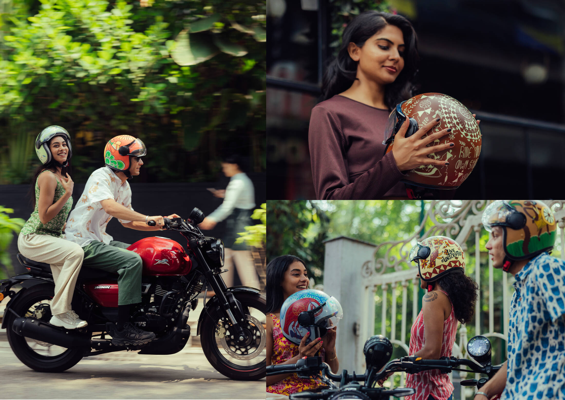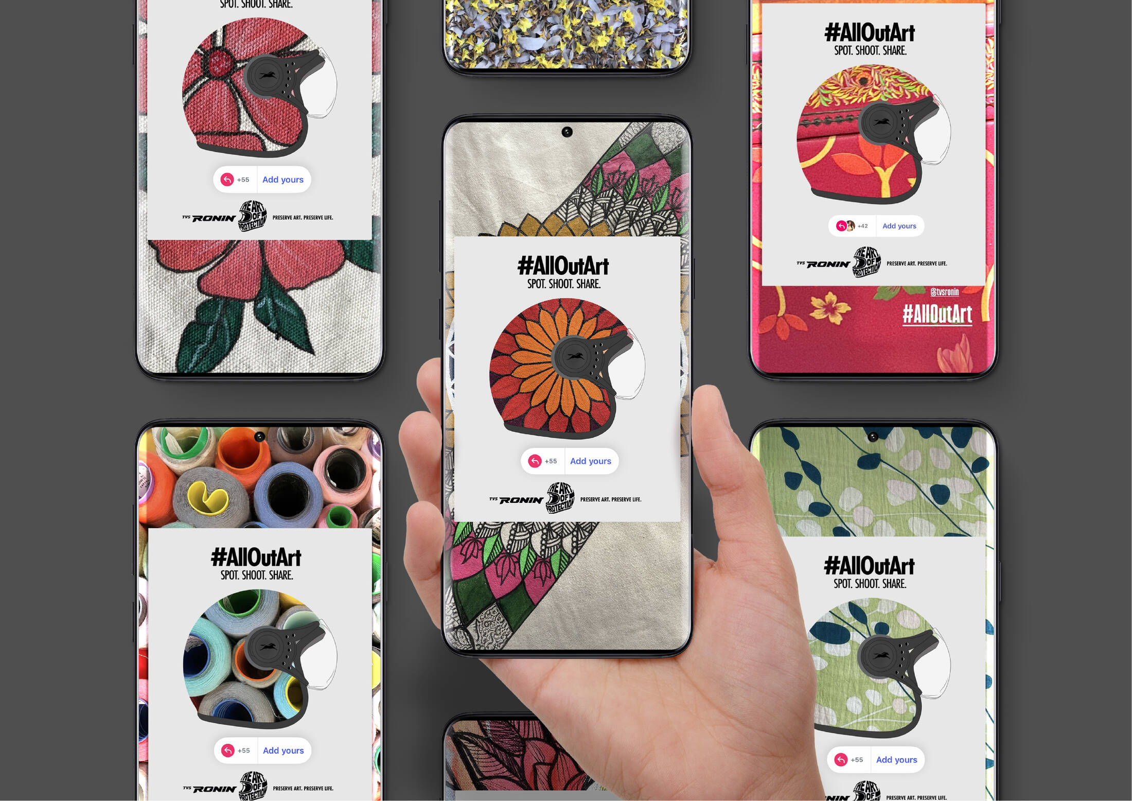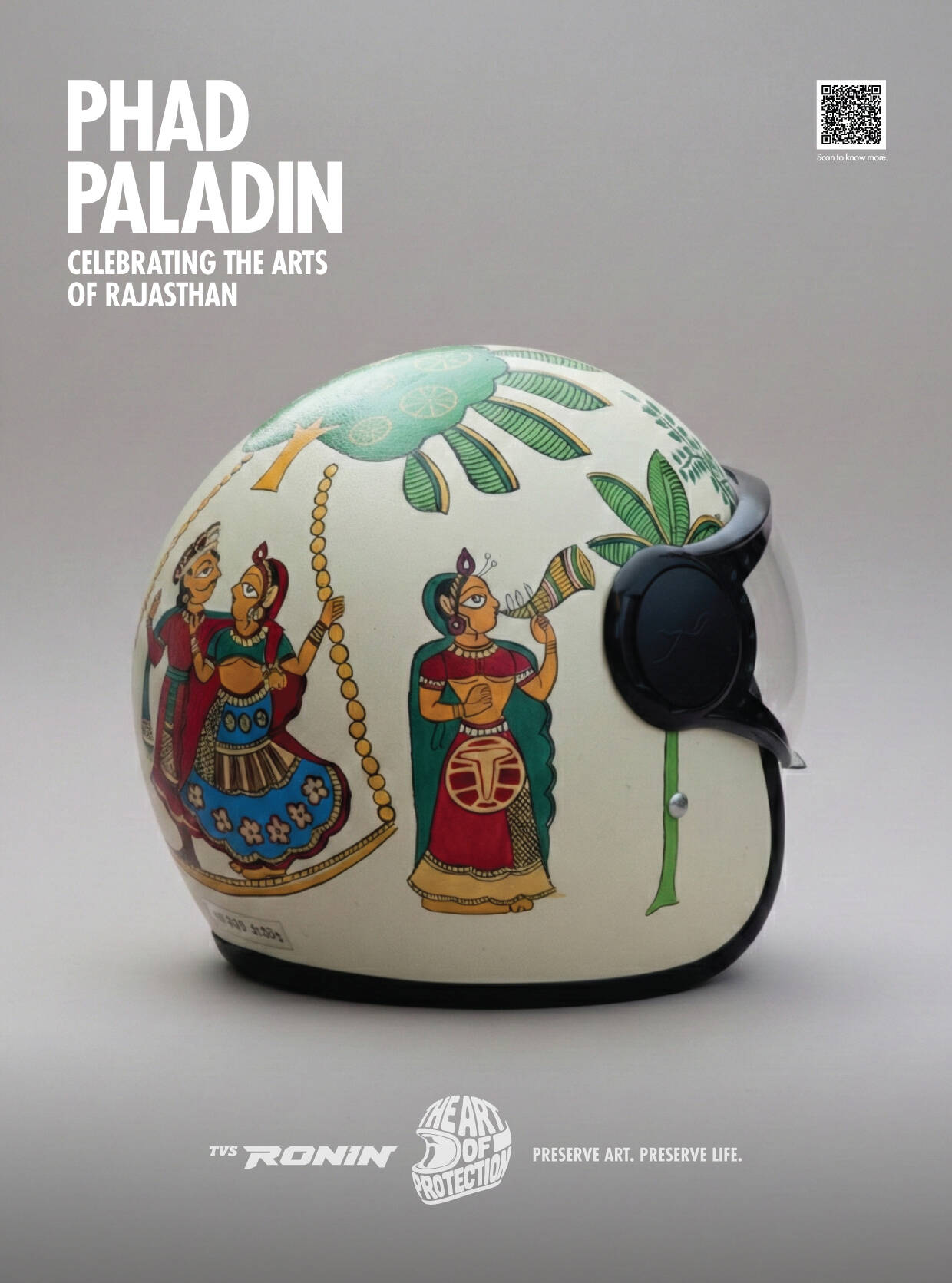 TVS RONIN’s The Art of Protection features a limited-edition collection of hand-painted helmets that fuse safety with storytelling. Each helmet is a wearable tribute to dying Indian folk arts, created in collaboration with homegrown artists. The design language, across over 380 hand-painted helmets, blends motorcycling elements with traditional folk art palettes and patterns. Since inception, the campaign has featured capsule launches, displays, workshops, collaborations, and on-ground installations that leverage vibrant design to promote both protection and preservation.
