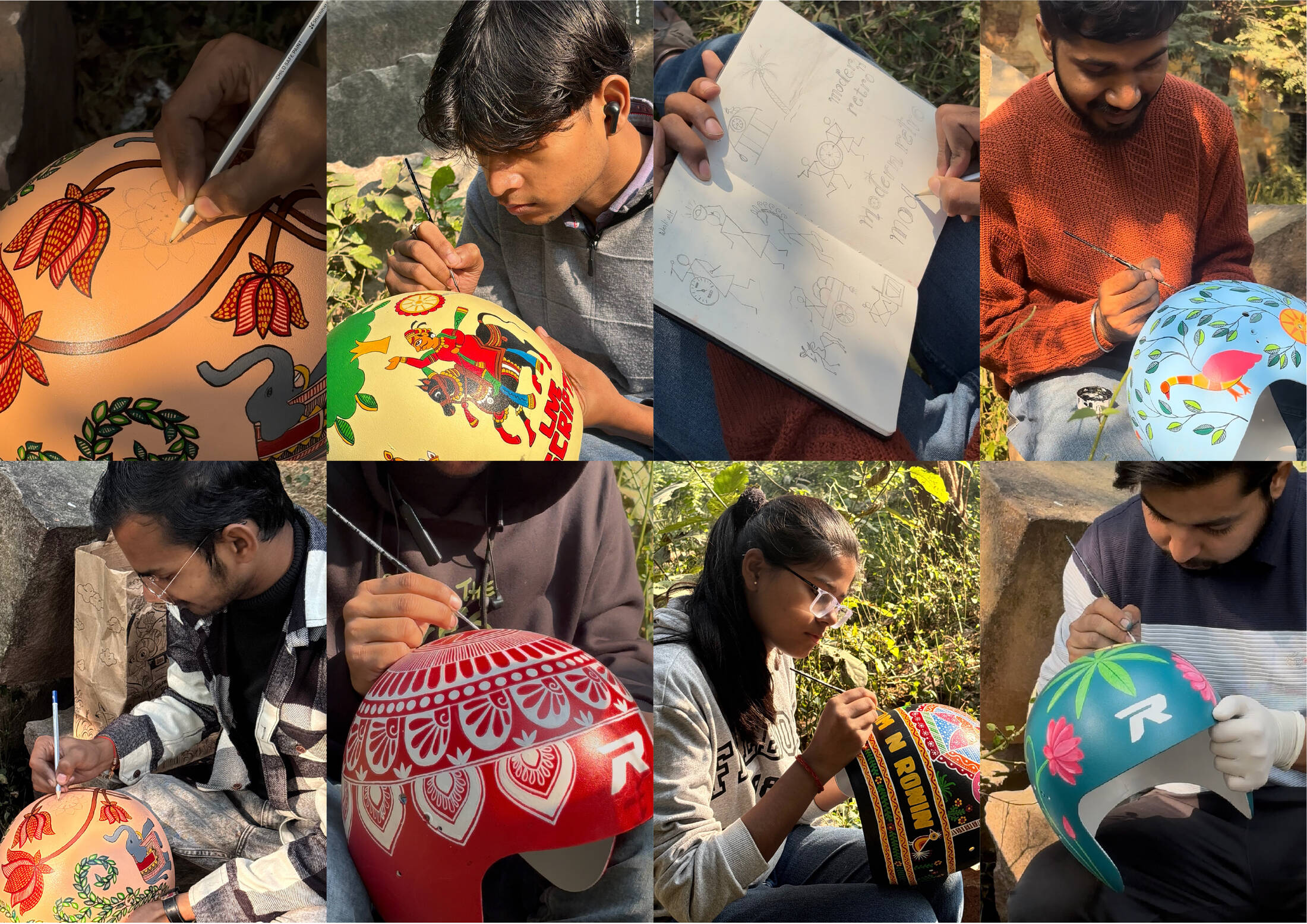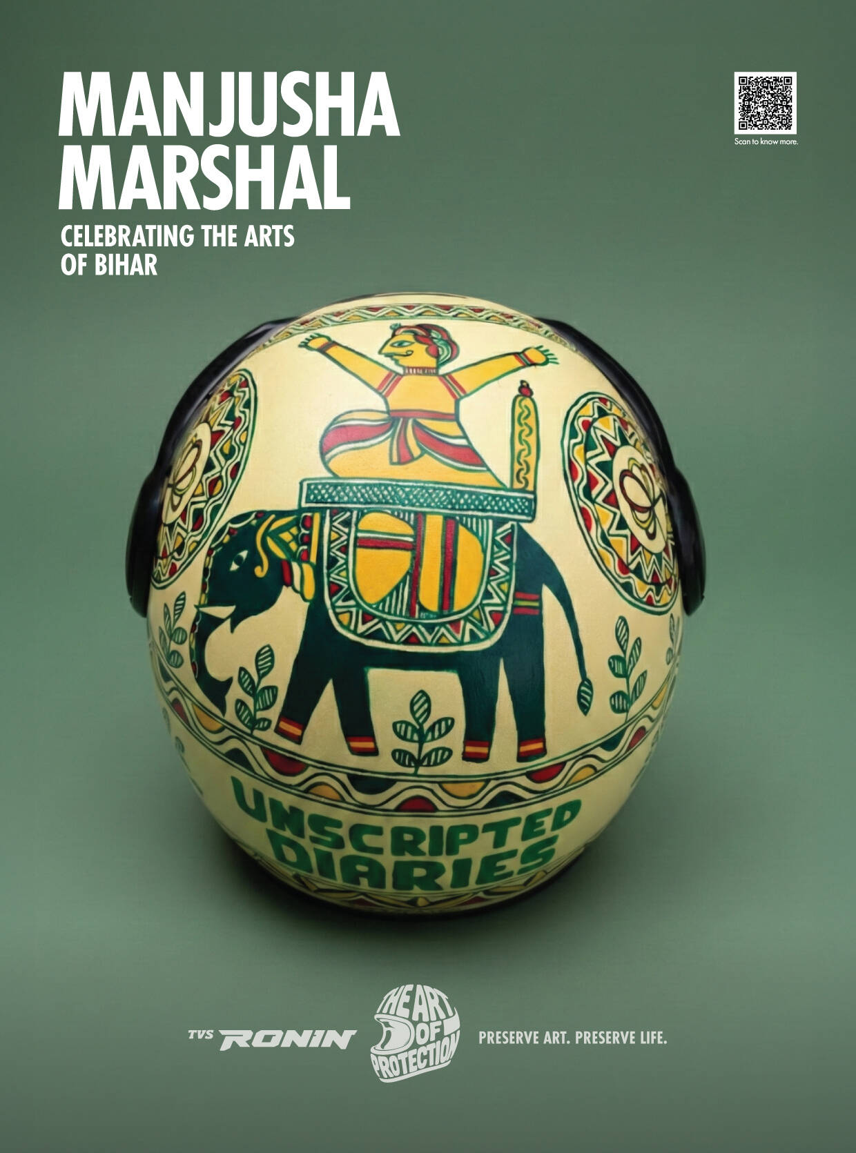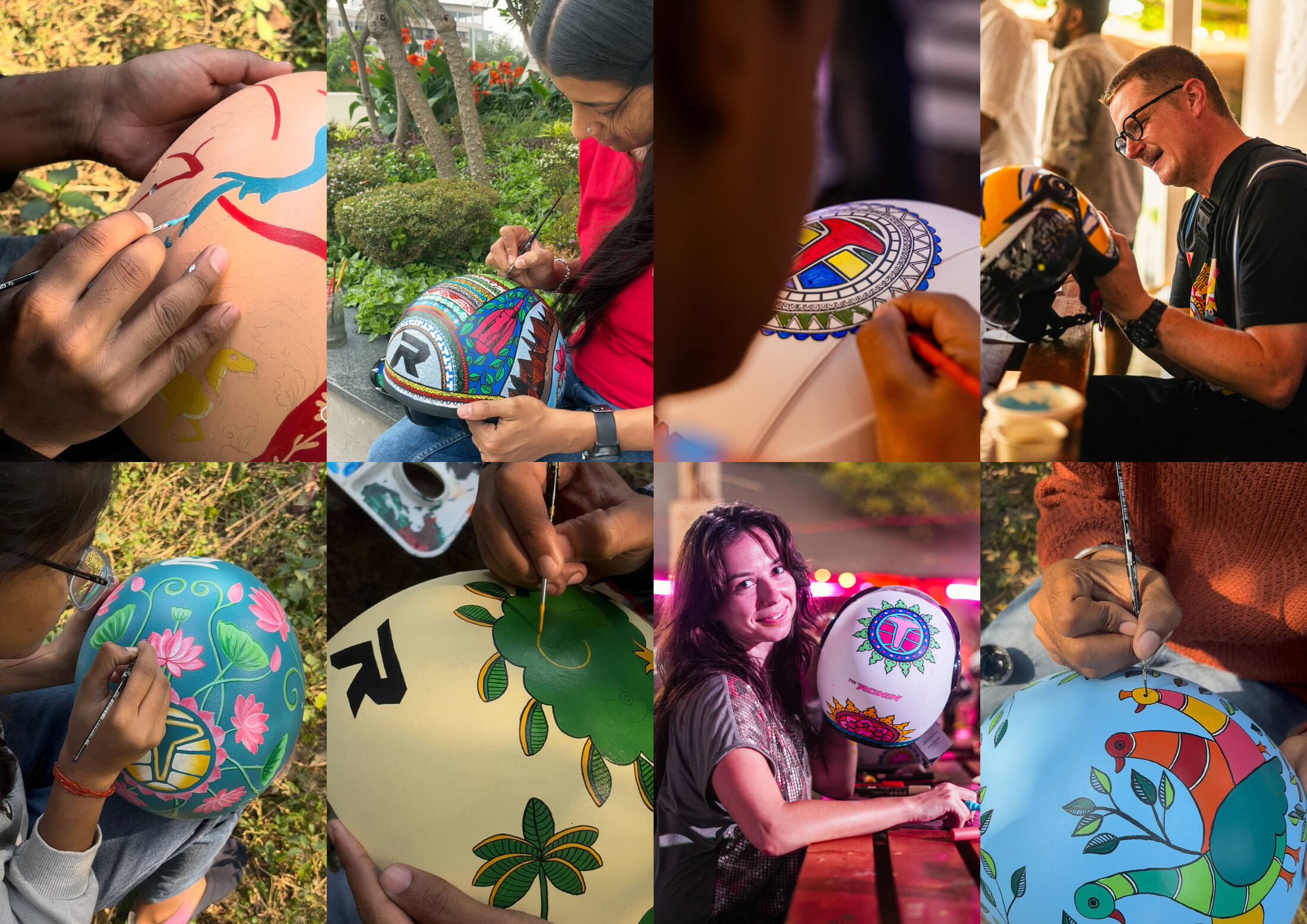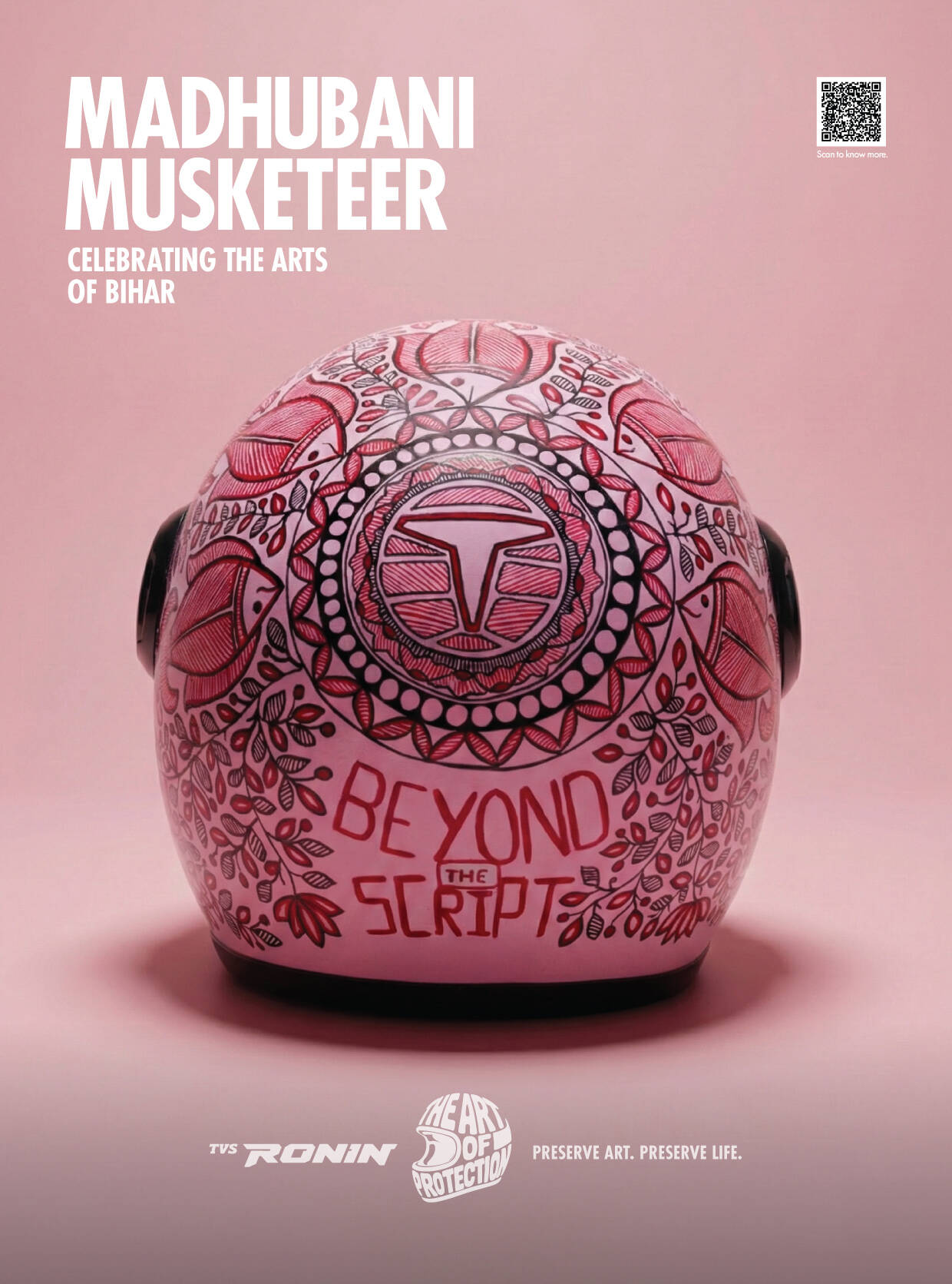 TVS RONIN’s The Art of Protection features a limited-edition collection of hand-painted helmets that fuse safety with storytelling. Each helmet is a wearable tribute to dying Indian folk arts, created in collaboration with homegrown artists. The design language, across over 380 hand-painted helmets, blends motorcycling elements with traditional folk art palettes and patterns. Since inception, the campaign has featured capsule launches, displays, workshops, collaborations, and on-ground installations that leverage vibrant design to promote both protection and preservation.