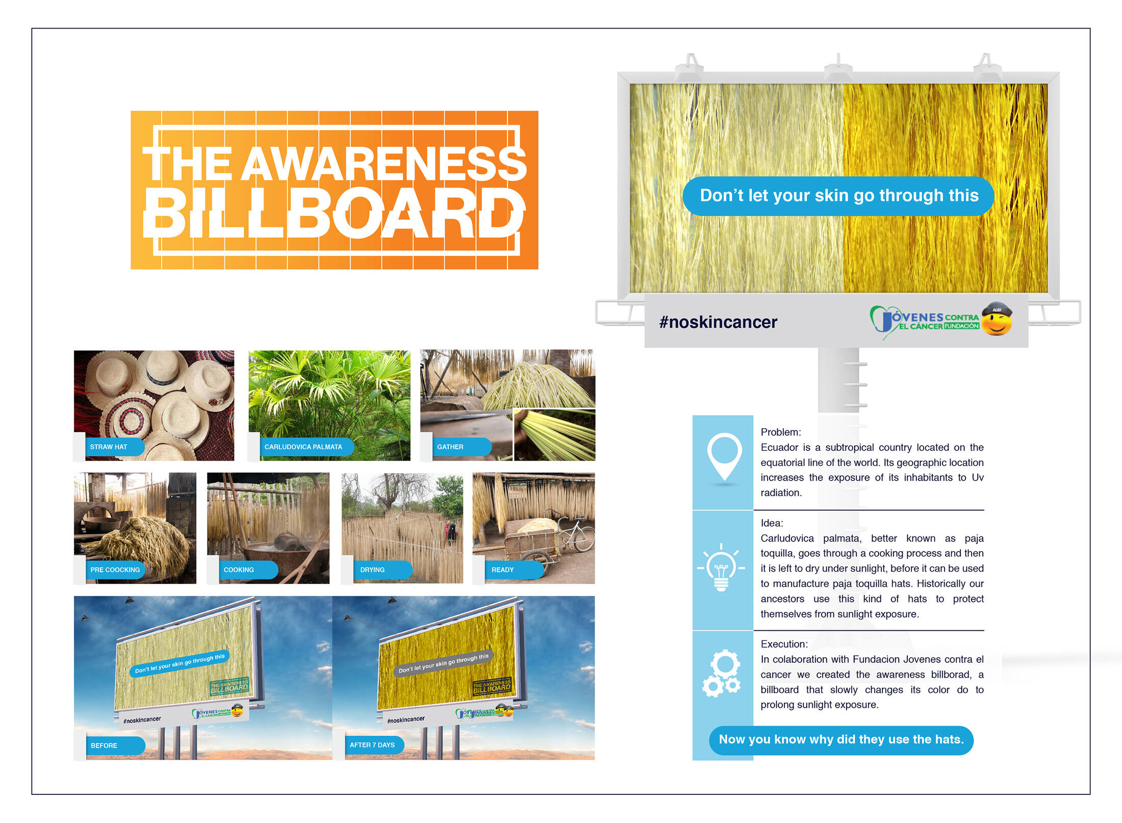 This professional campaign titled 'The Awareness Billboard' was published in Ecuador in February, 2017. It was created for the brand: FUNDACIÓN JOVENES CONTRA EL CANCER, by ad agency: Maksim Fulltime. This OOH Outdoor medium campaign is related to the Public Interest industry and contains 1 media asset. It was submitted over 8 years ago.