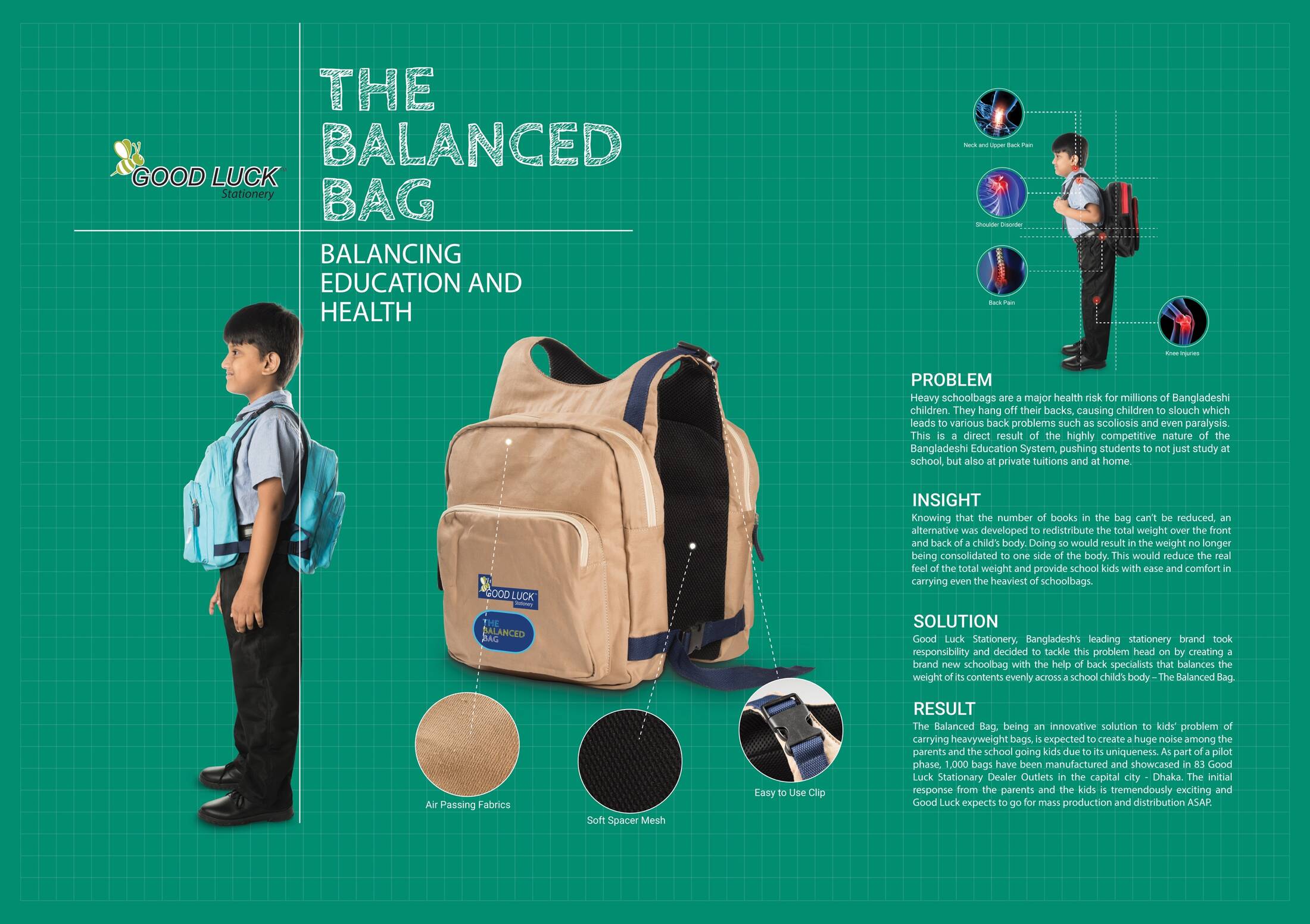 This professional campaign titled 'The balanced bag' was published in Bangladesh in May, 2017. It was created for the brand: Good Luck Stationary, by ad agency: Grey. This Static Images medium campaign is related to the Office Equipment industry and contains 1 media asset. It was submitted over 8 years ago.