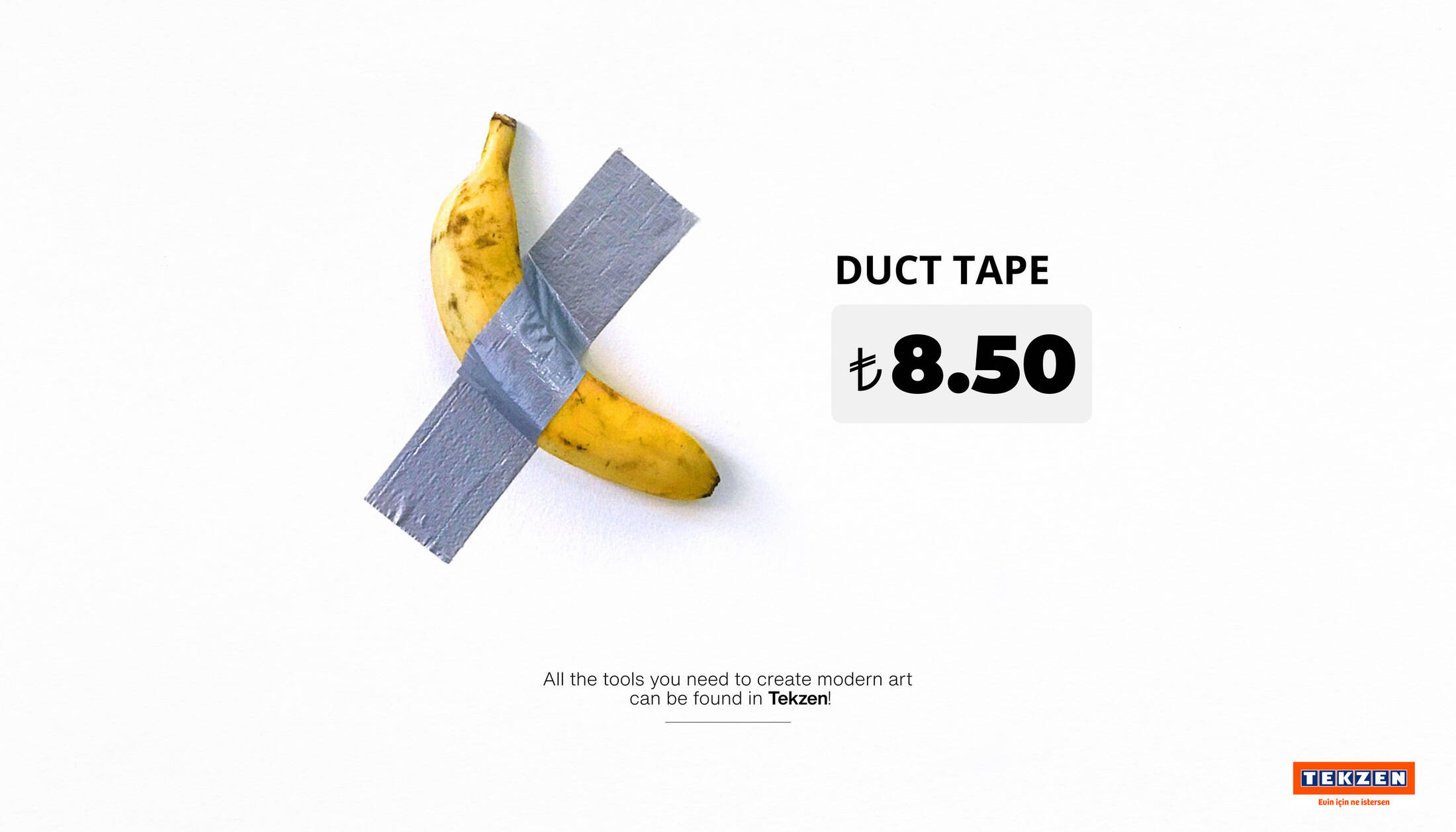 The latest modern art development that kept the internet busy was a banana stuck on a wall with a duck-tape, the art belonged to Maurizio Cattelan and valued $120,000… Until, another modern artist David Dattuna ate the banana that kept the news websites and social media busy. On Sunday, we’ve made the real-time campaign specifically for the subject that became the main topic of the entire digital world again. https://www.facebook.com/tekzenturkiye/photos/a.10151780743467830/1015... As Tekzen, the Turkish Construction Market that satisfies the needs of everything regarding the home tools and appliances, we gave a sarcastic and fun message with the duck-tape that we sell. “Everything you need for Modern Artwork is in Tekzen!” The campaign that began as a real-time social media post turned to a special landing page with the same keyvisual on www.tekzen.com.tr. Whoever clicked on the website could see the variety of duck-tapes. Afterward, we’ve prepared special dressings with banana replicas for the tape sections of the Tekzen stores. We’ve went beyond and placed those replicas to the to the streets where some of Turkey’s most important art-galleries located in, like an exhibition and as a good example of guerrilla marketing. People came across with this art could see our message “Everything you need for Modern Artwork is in Tekzen!” and reached to the duck-tape section of our website as they’ve scanned the QR code. The interactions are as follows: 81,936 likes, 1,384 comments, and 2,826 sharings. https://www.instagram.com/p/B52DU-Dhzf6/