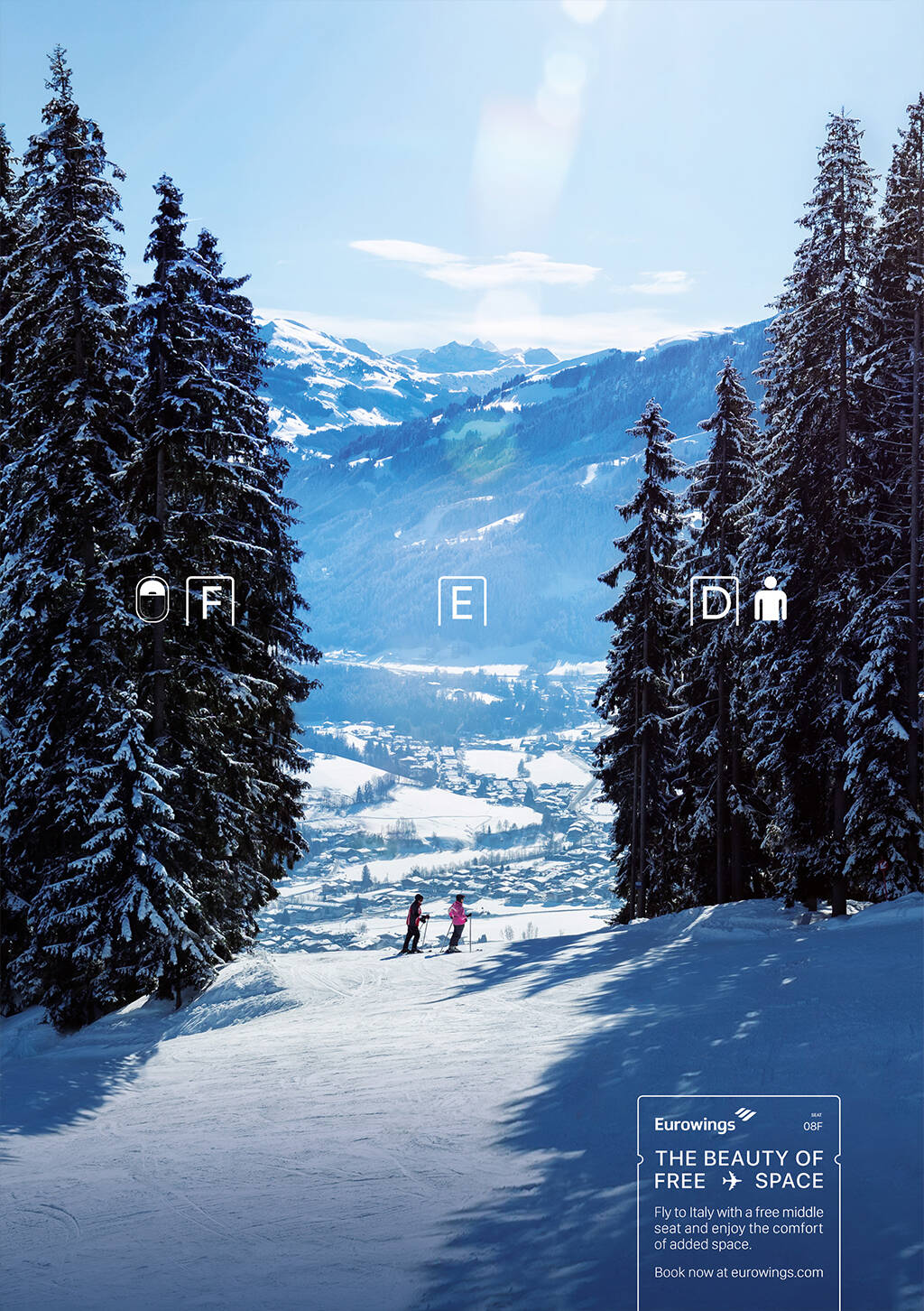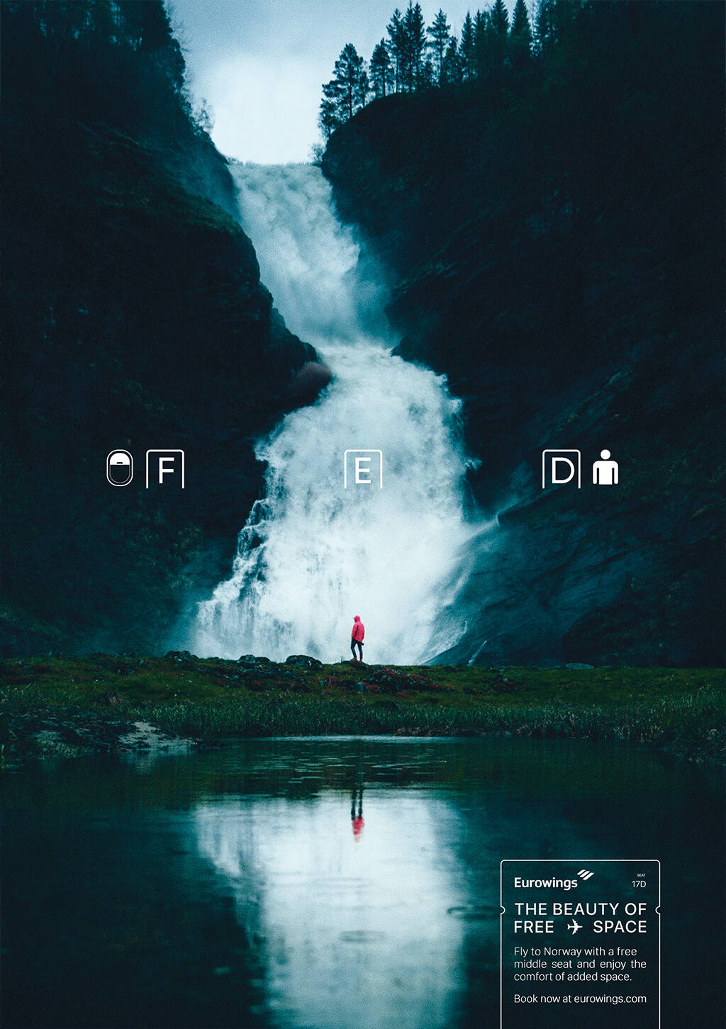 Print and OOH Campaign to showcase the seat upgrade option from Eurowings. Fly with an empty middle seat next to you and discover the beauty of free space.