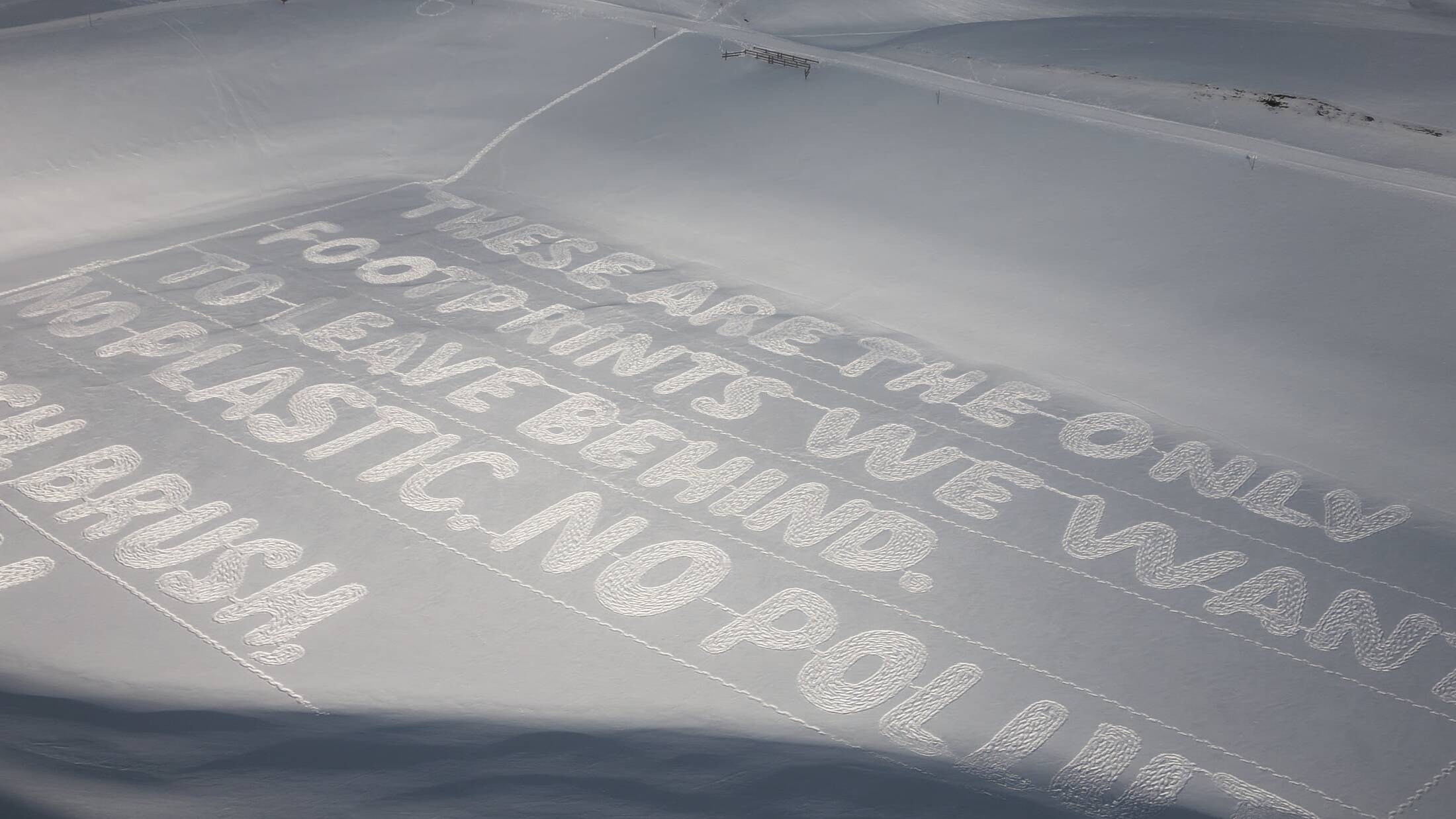 Artist sets World Record with the world's largest snow artwork spanning 13,625 m² to deliver a sustainable message in the fight against plastic