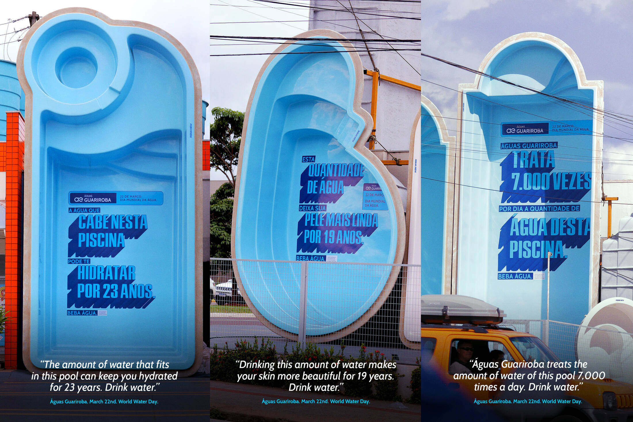 Many people forgets to drink water due to their busy routines. So, Águas Guariroba, one of the largest water suppliers in Brazil, decided to change this small behavior, with a big message in a space never explored as media before: swimming pools for sale.