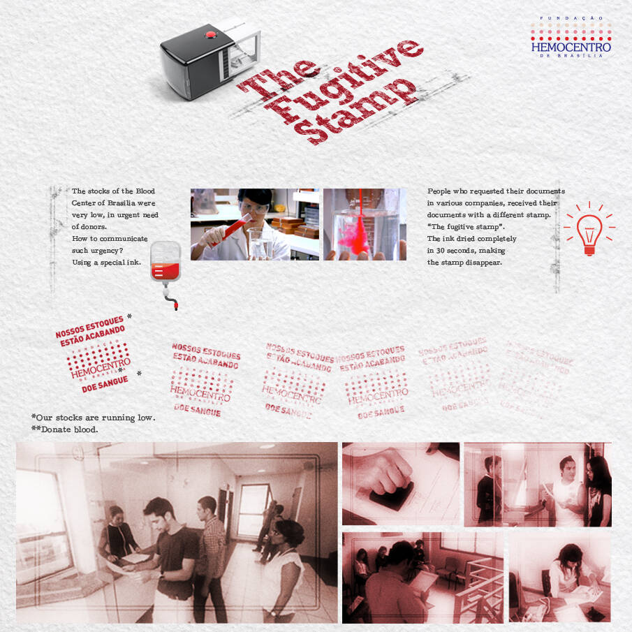 This professional campaign titled 'The Fugitive Stamp' was published in Brazil in January, 2011. It was created for the brand: Fundação Hemocentro de Brasília, by ad agency: Fields. This Static Images medium campaign is related to the Health industry and contains 1 media asset. It was submitted over 14 years ago.