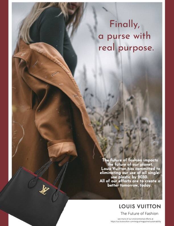 Solution: Show how, by buying an item from Louis Vuitton, the consumer is helping Louis Vuitton on their environmental goals and therefore adding purpose to what they buy.