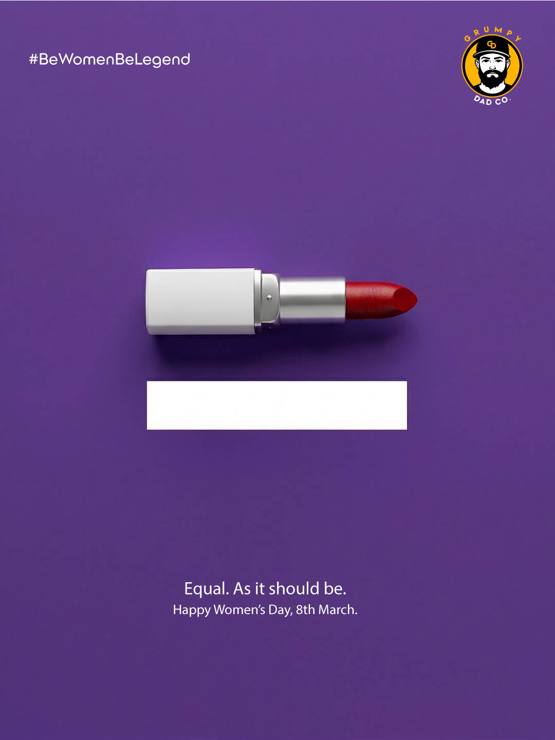 The primary objective of this piece is to reclaim the original purpose of International Women’s Day, moving away from superficial greetings and complacent branding that often dilutes the significance of the date. We sought to transform the celebration into a visual statement of principles, focusing on the historical struggle for labor equality and the closing of social gaps. The execution is grounded in an extreme synthesis that combines the elegance of high-end cosmetics with the stark reality of a pending social demand. We utilized a language of color and abstract symbolism to elevate the message, employing a saturated purple tone that pays homage to the suffragette movement and justice. The central element, a lipstick positioned horizontally, ceases to be a beauty object to become the upper component of an equals sign. This piece of visual engineering ensures that a daily icon of femininity acquires a mathematical weight of equity, stripping away any narrative noise.