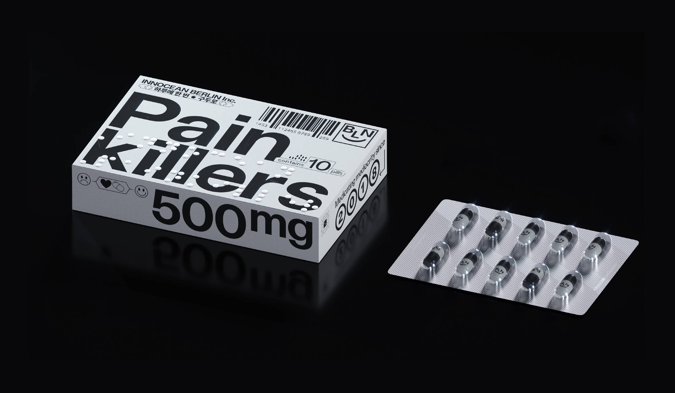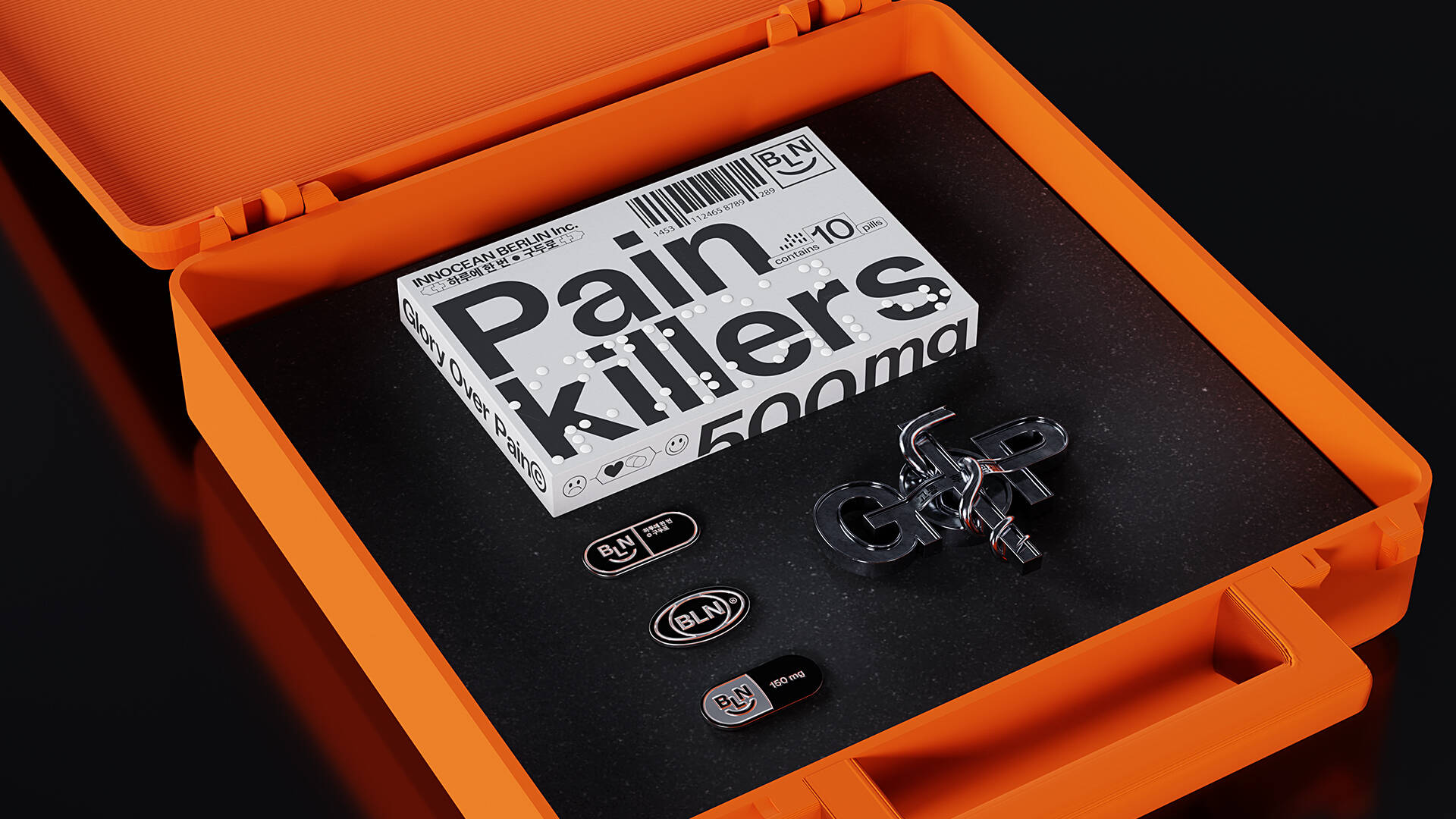The Concept: Innocean Berlin as a pharmacy for brands. The entire visual identity takes inspiration from pharmaceuticals, painkillers, first-aid kits, and prescriptions.
