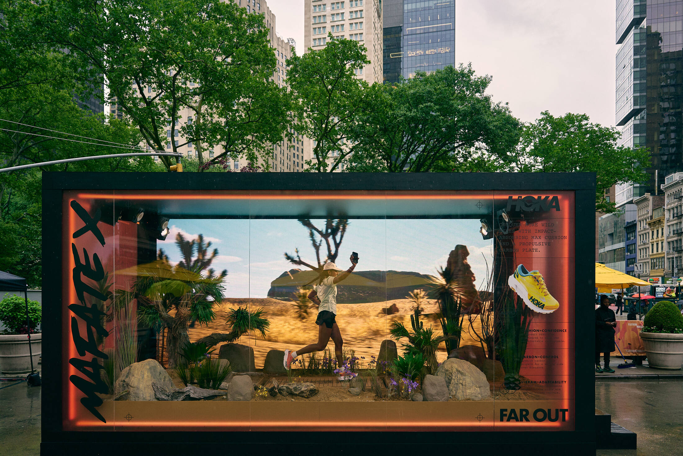 Between runners, the installation became a 3D billboard, with Mafate X graphics and film of trail runners tackling ultra trails displayed in our real desert environment. The activation turned a busy city block into a head-turning reminder of HOKA’s innovation and trail heritage. Successfully reconnecting the brand with the elite ultra-running community, while sparking curiosity in a broader audience. By collapsing the distance between city and trail, the Mafate X Far Out Experience didn’t just launch a shoe, it launched the Mafate X mindset.