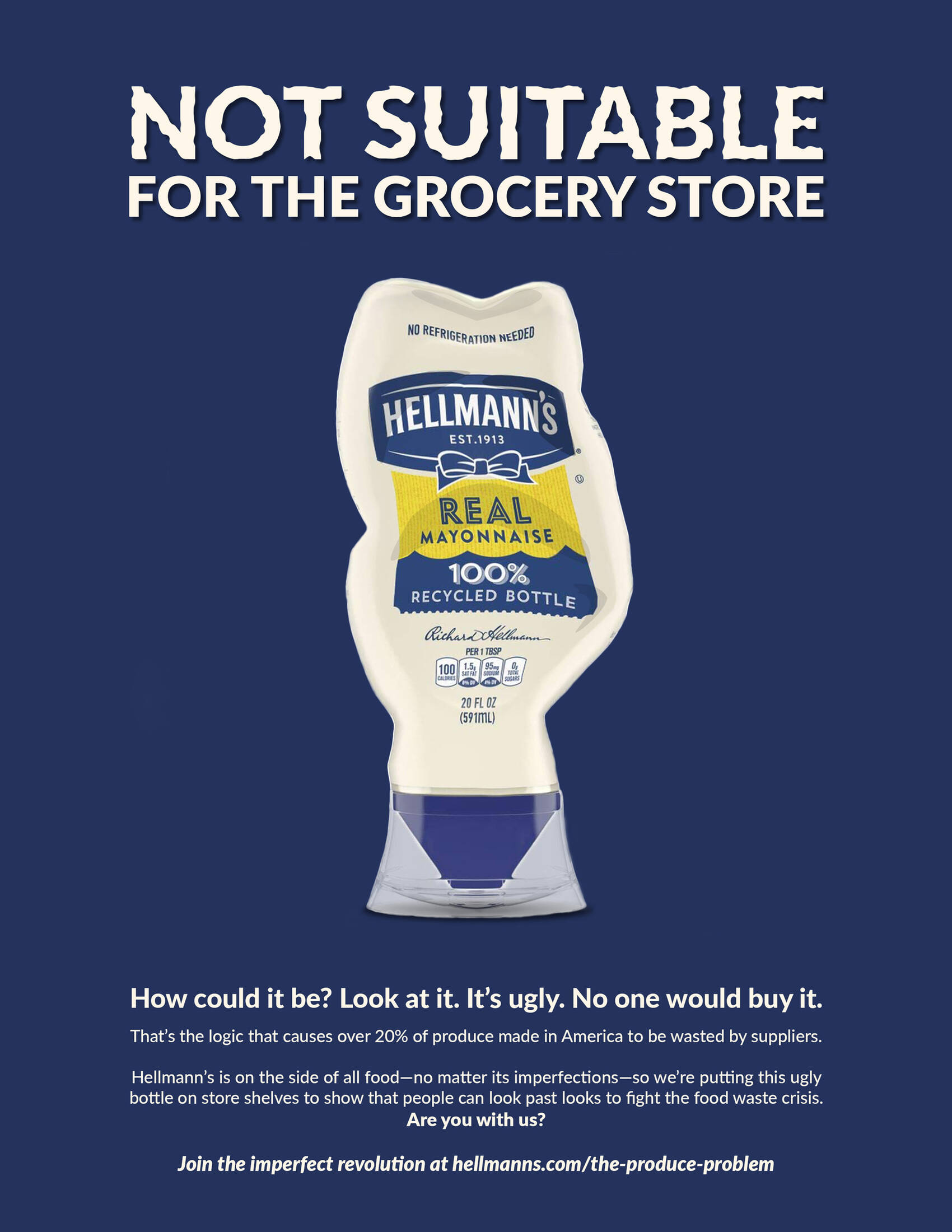 For years, Hellmann’s has been finding ways to fight food waste to back up its motto, “we’re on the side of food.” To continue this fight, Hellmann’s will release The Imperfect Bottle to draw attention to the fact that over 20% of produce grown in America is thrown away due to shape.
