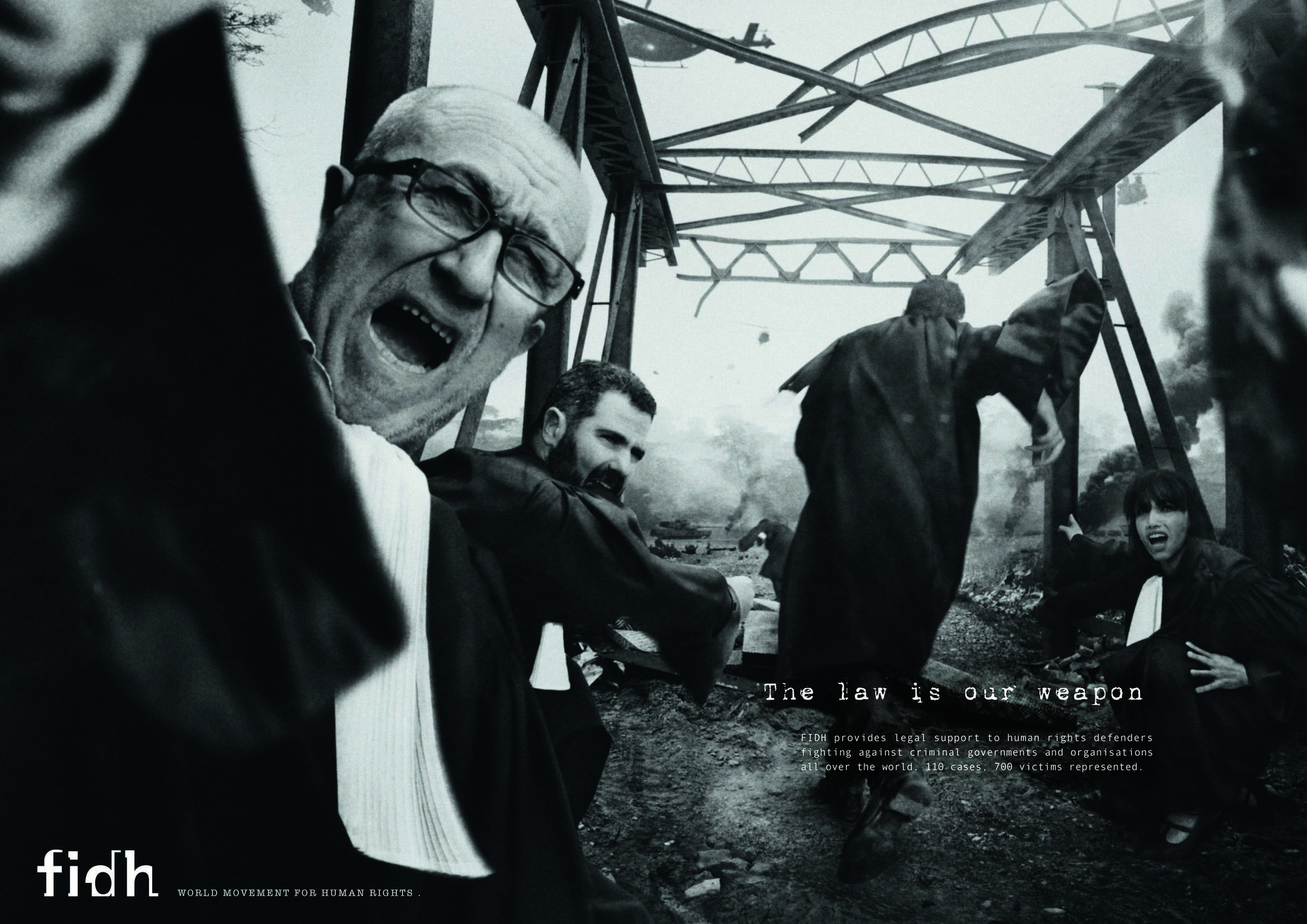 This professional campaign titled 'The law is our weapon' was published in United States in April, 2015. It was created for the brand: fidh, by ad agency: Saatchi & Saatchi. This Print medium campaign is related to the Public Interest industry and contains 3 media assets. It was submitted over 8 years ago.