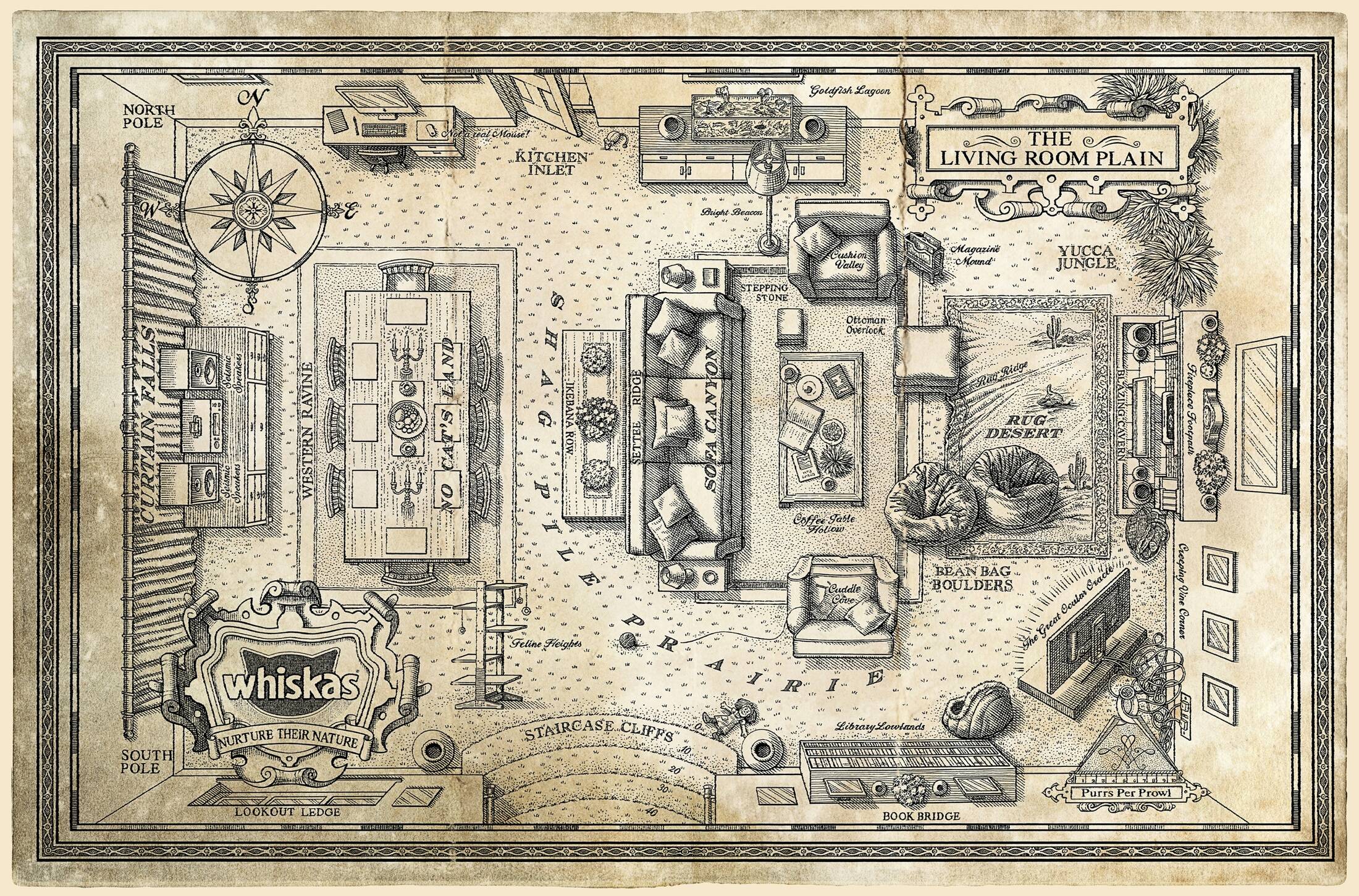 This professional campaign titled 'The Living Room Plain Map, The Garden Outback Map, The Ki...' was published in United Kingdom in April, 2014. It was created for the brand: Whiskas, by ad agency: BBDO. This Print medium campaign is related to the House, Garden industry and contains 3 media assets. It was submitted over 11 years ago.