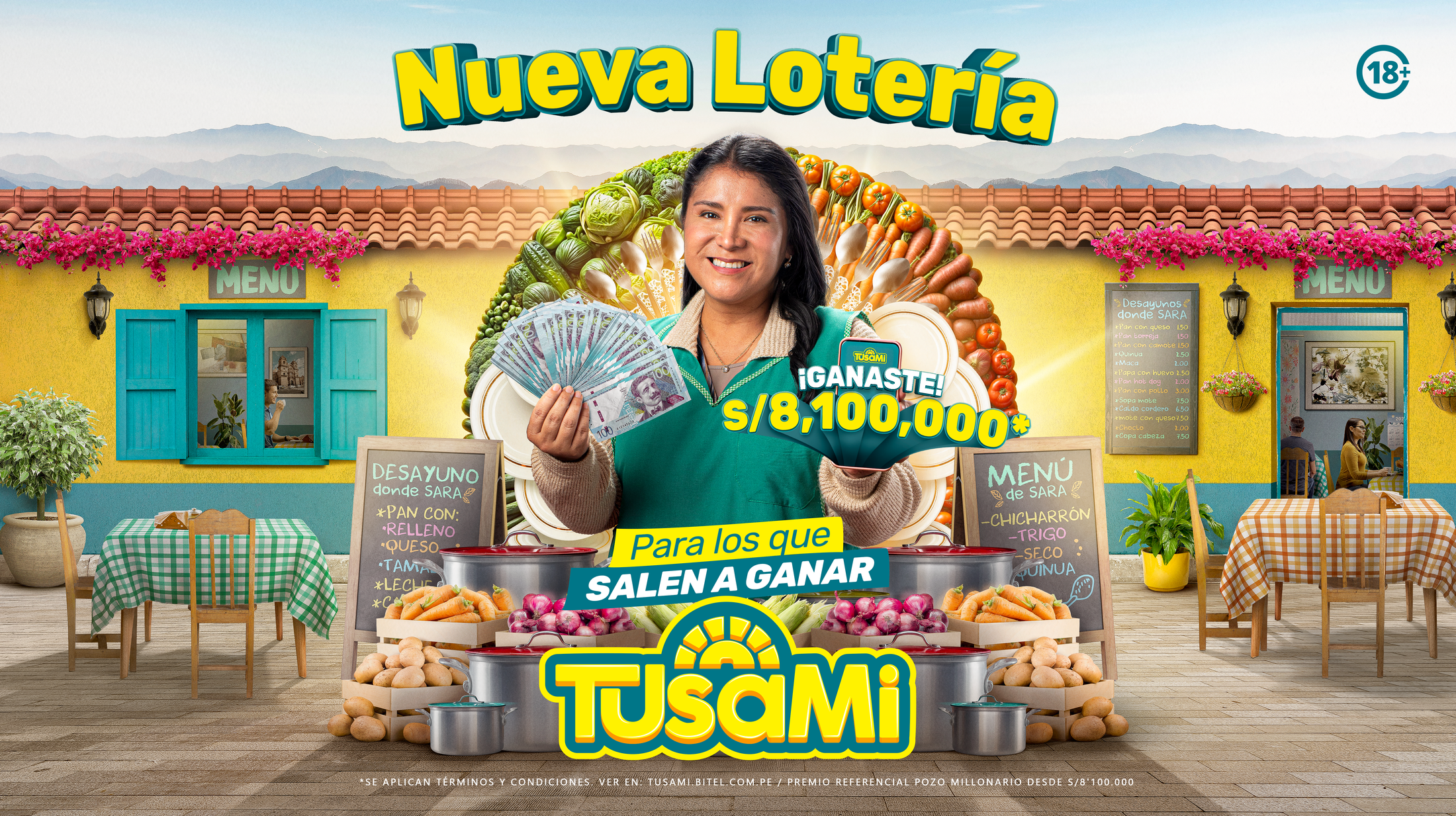 We are TuSami, Sara's new lottery that always goes out to win every morning choosing the best for her breakfasts. Lots of punch for her little ones! And Juan's new move that after his job, always goes out to win chasing a dream. With the kids from the neighborhood And Cristina's, who always goes out to win it Stitch by stitch and Tusami by Tusami with her team For all those who go out to win it day by day in Peru. Daily, Weekly or Millionaire TuSami. Winners every 2 hours, with Tusami Turbo and Horoscopo. And every week and every month, with the Billetón. TuSami, The new Peruvian lottery for those who go out to win. TUSAMI!