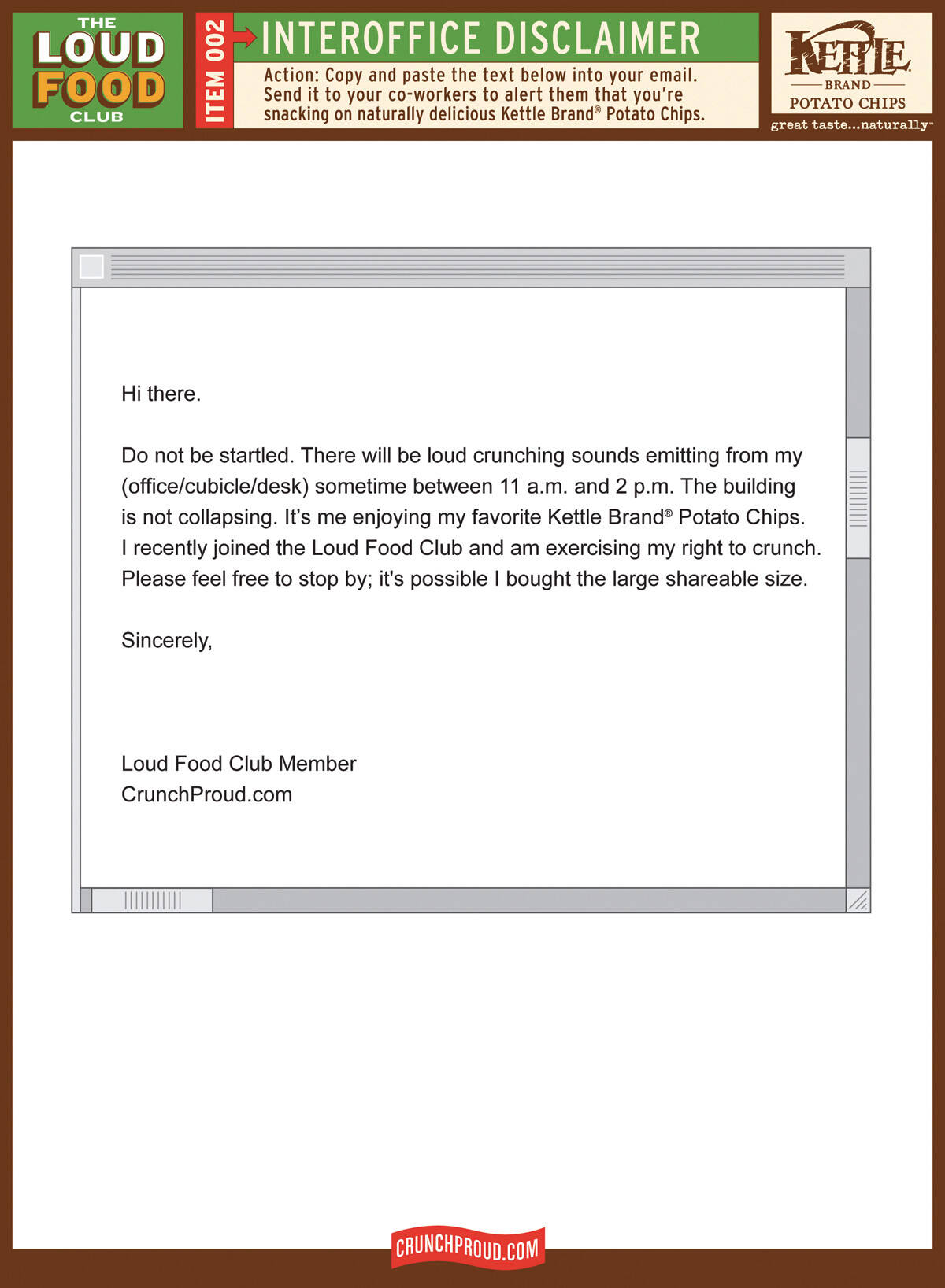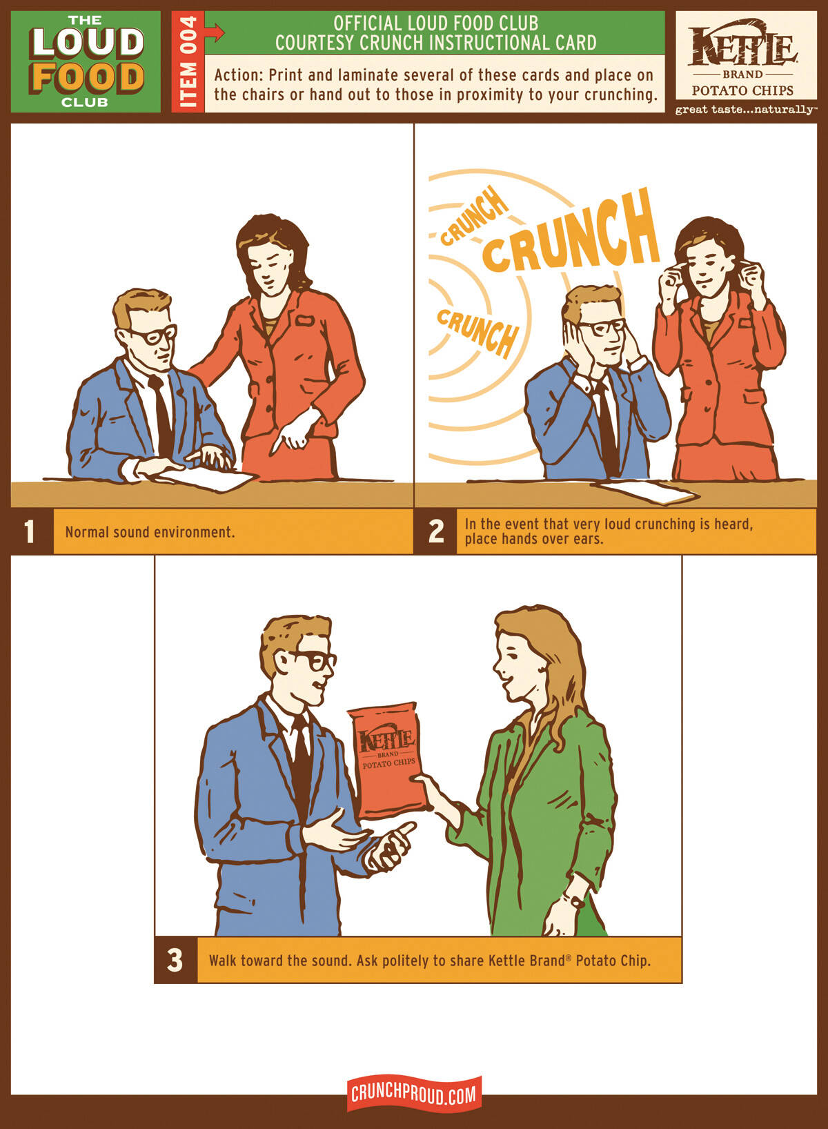 This professional campaign titled 'The Loud Food Club, Pictogram, The Loud Food Club, Flag, ...' was published in United States in July, 2010. It was created for the brand: Kettle, by ad agency: Cultivator. This Print medium campaign is related to the Food industry and contains 4 media assets. It was submitted over 15 years ago.