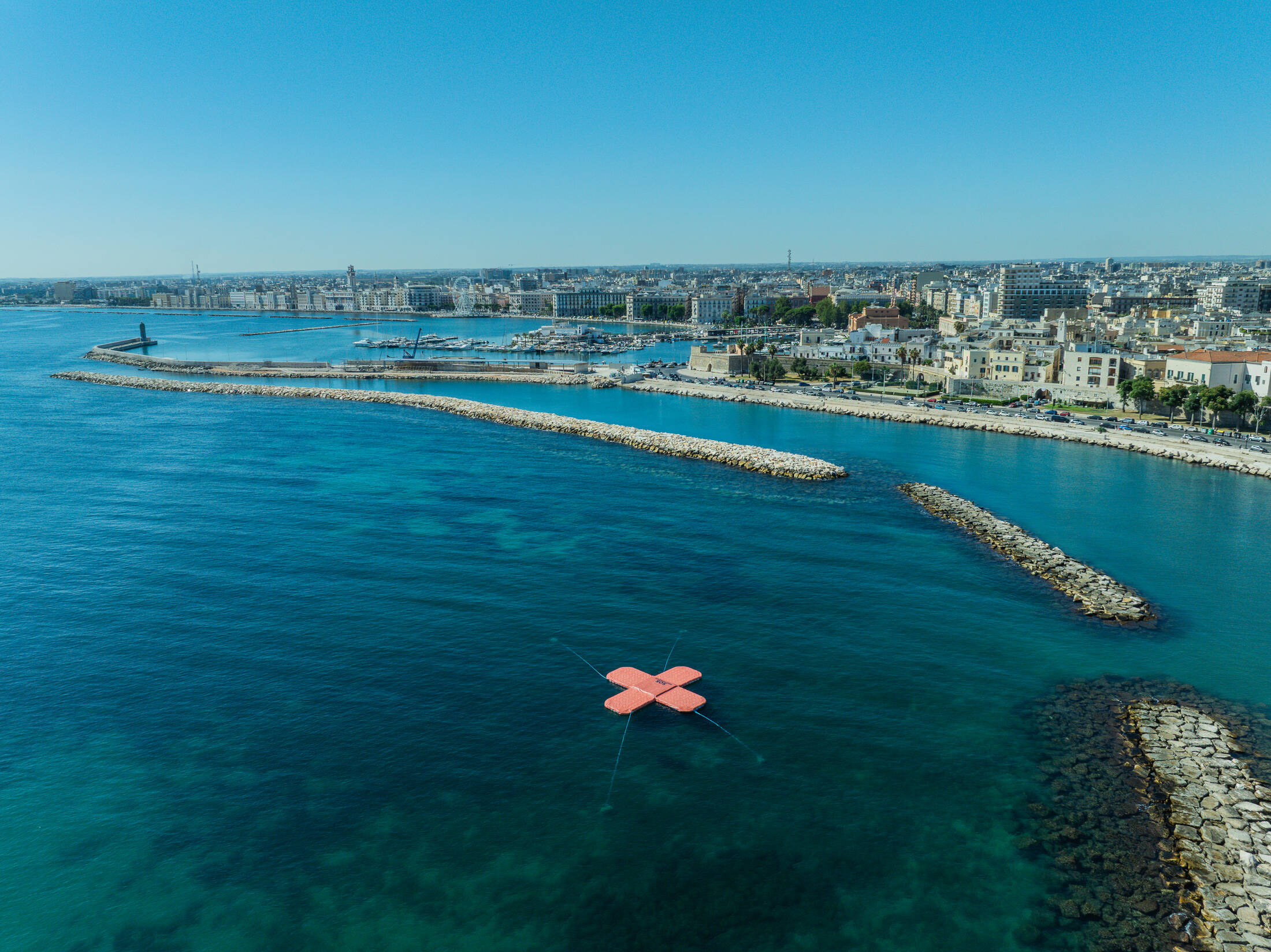 On July 12 and 13, a large floating art installation appeared off the coast of Bari, one of Southern Italy’s most touristic city, created by VICEVERSA Studio for SOS MEDITERRANEE, an international maritime and humanitarian organization dedicated to saving lives at sea. The piece—a 90-square-meter plaster patch adrift in the sea—served as a stark visual metaphor: the Mediterranean is an open wound.