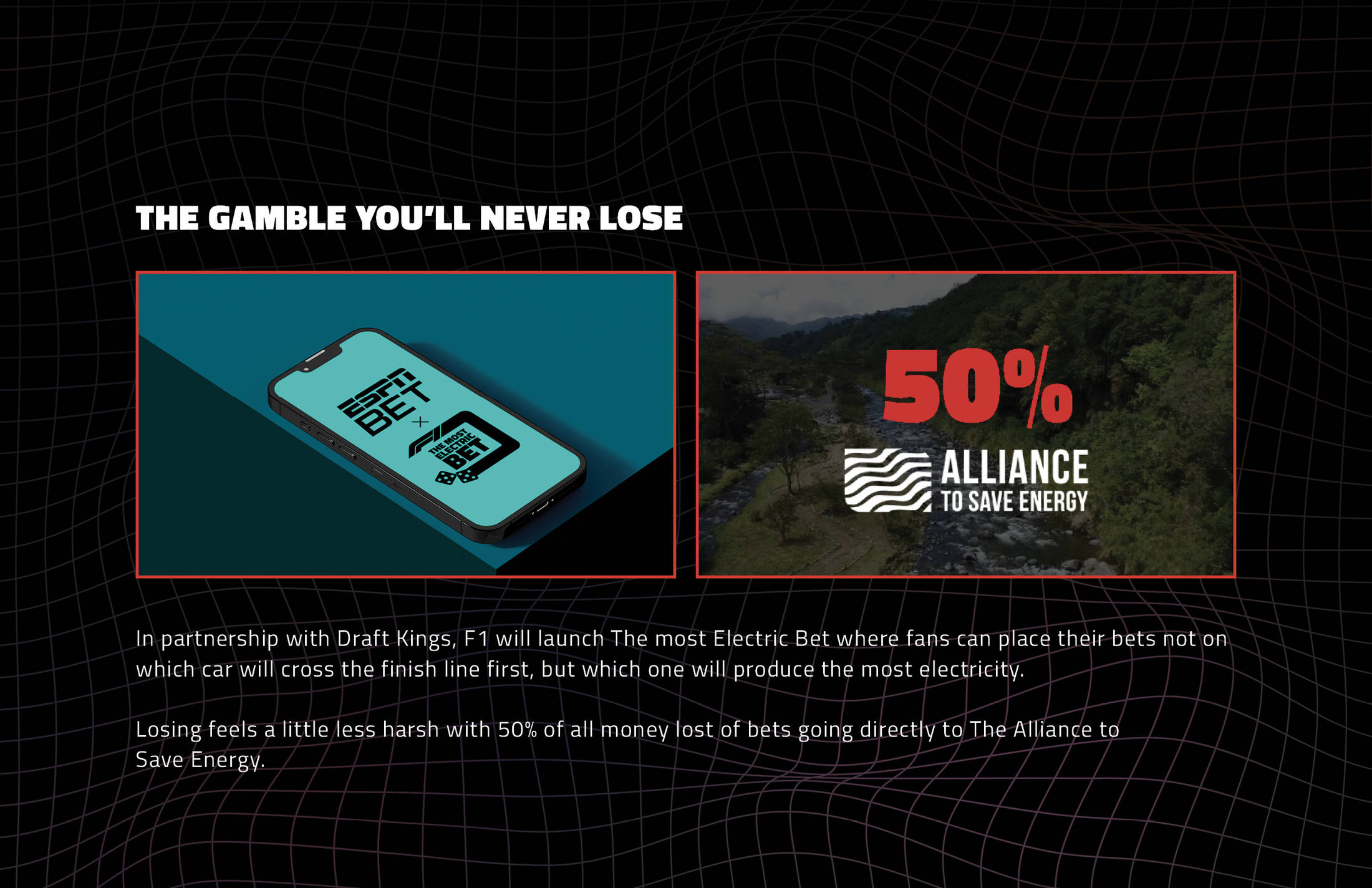 Big Idea: Gambling for good by betting on how much electricity F1 cars generate.