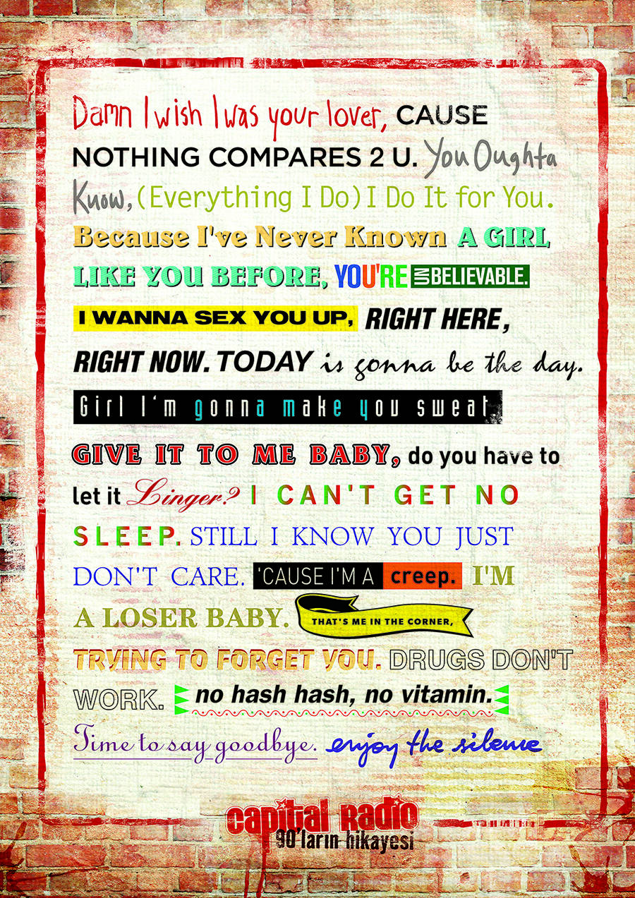 This professional campaign titled 'The musical story of the 90's, The musical story of the 80's' was published in Turkey in November, 2013. It was created for the brand: Capital Radio, by ad agency: Grey. This Print medium campaign is related to the Media industry and contains 2 media assets. It was submitted about 12 years ago.