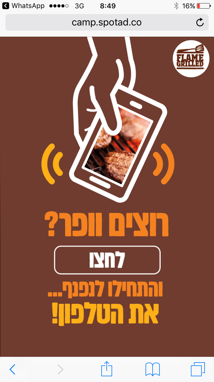 Flamed grill pros Burger King decided to help everyone get ready for Israeli Independence Day and created an interactive mobile phone pre-loader ad experience which invited people to practice their BBQ fanning skills… with their phone! The higher the flame they managed to fan up– the higher the discount they got on a delicious grill flamed Whopper Meal.