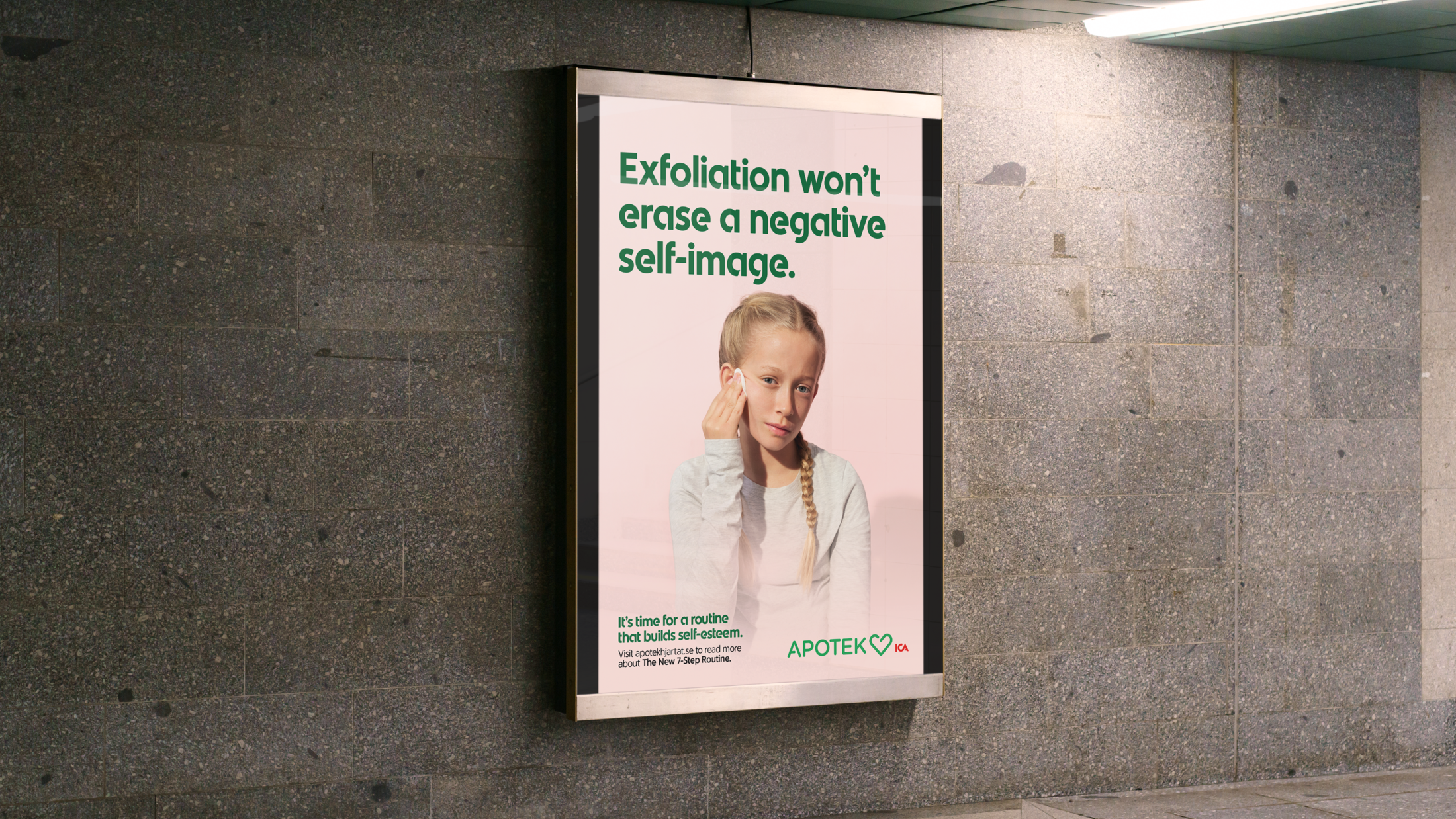 Seven out of ten girls aged 10–18 say they wish they looked like a filtered version of themselves. At the same time, advanced skincare routines are becoming more common among teens and children. In response, Swedish pharmacy Apotek Hjärtat launches The New 7-Step Routine — an integrated campaign that shifts focus beyond products.
