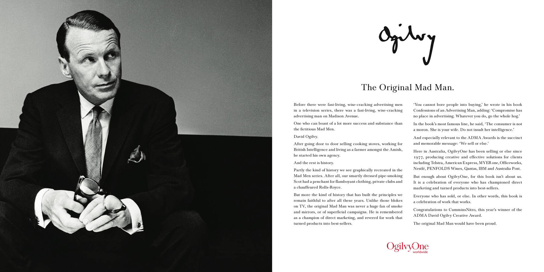 OgilvyOne Australia sponsored the David Ogilvy Creative Award at the ADMA 2009 Awards, organised by the Australian Direct Marketing Association. This ad was placed in the Winners Book which was