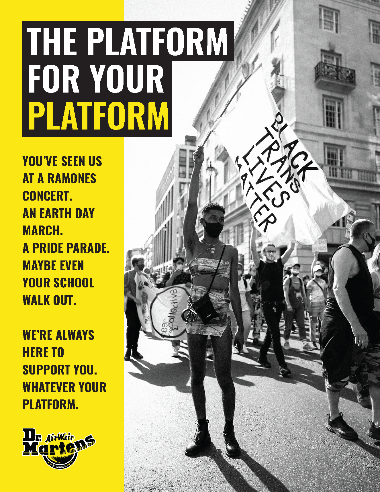 This student campaign titled 'The Platform for Your Platform' was published in United States in February, 2024. It was created for the brand: Doc Martens, by ad school: University of Nebraska-Lincoln. This Print medium campaign is related to the Fashion industry and contains 1 media asset. It was submitted almost 2 years ago by Asst. Professor of Practice: Brian Hubbard of Universtiy of Nebraska-Lincoln.
