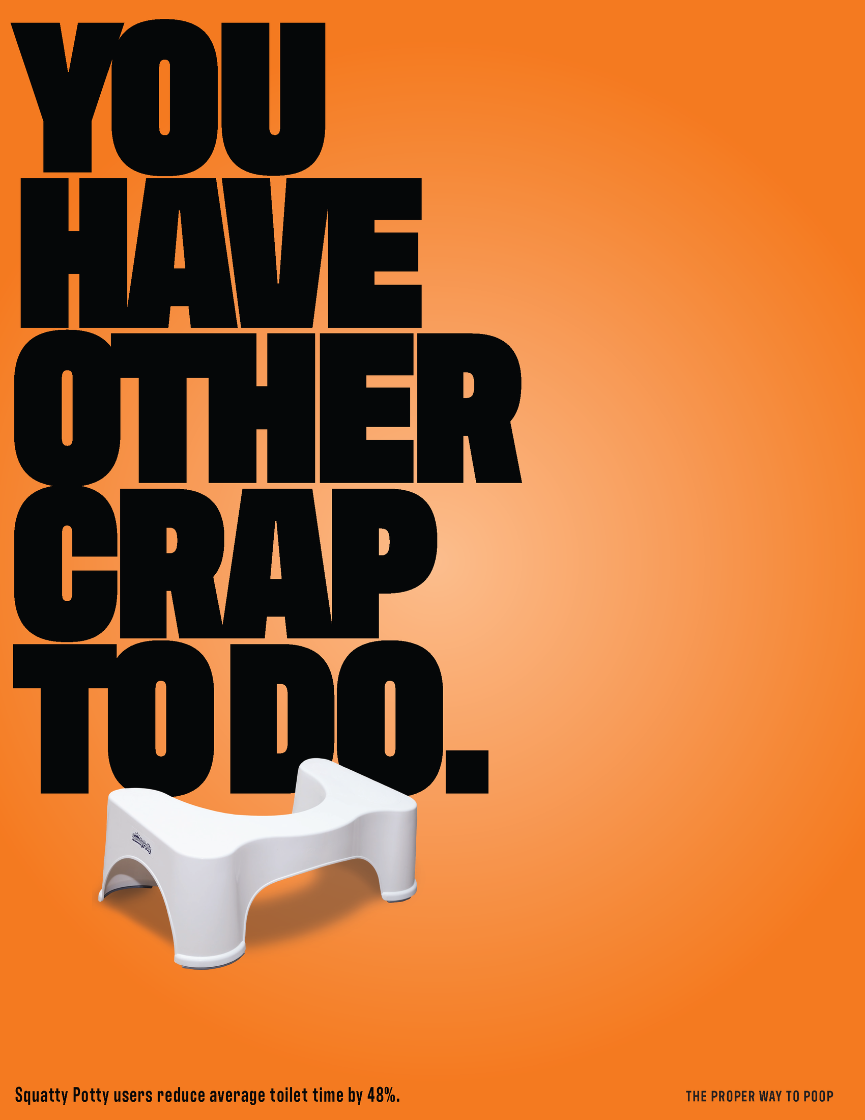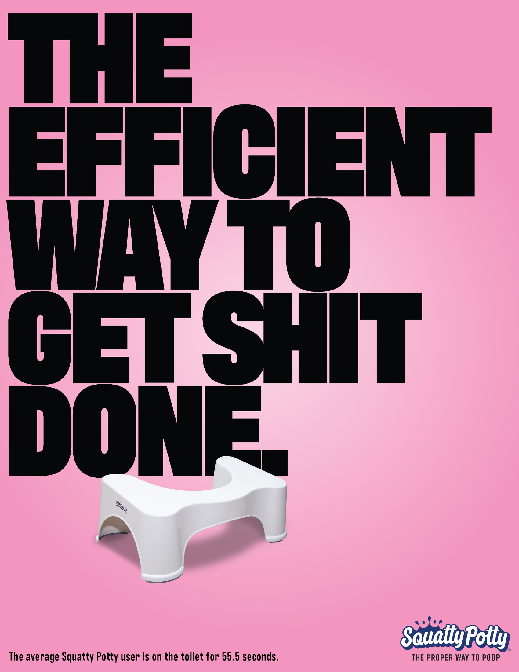 This student campaign titled 'The Proper Way to Poop' was published in United States in March, 2024. It was created for the brand: Squatty Potty, by ad schools: SMU Temerlin Advertising Institute and Southern Methodist University. This Integrated, OOH Outdoor, and Print media campaign is related to the Health industry and contains 5 media assets. It was submitted 10 months ago.