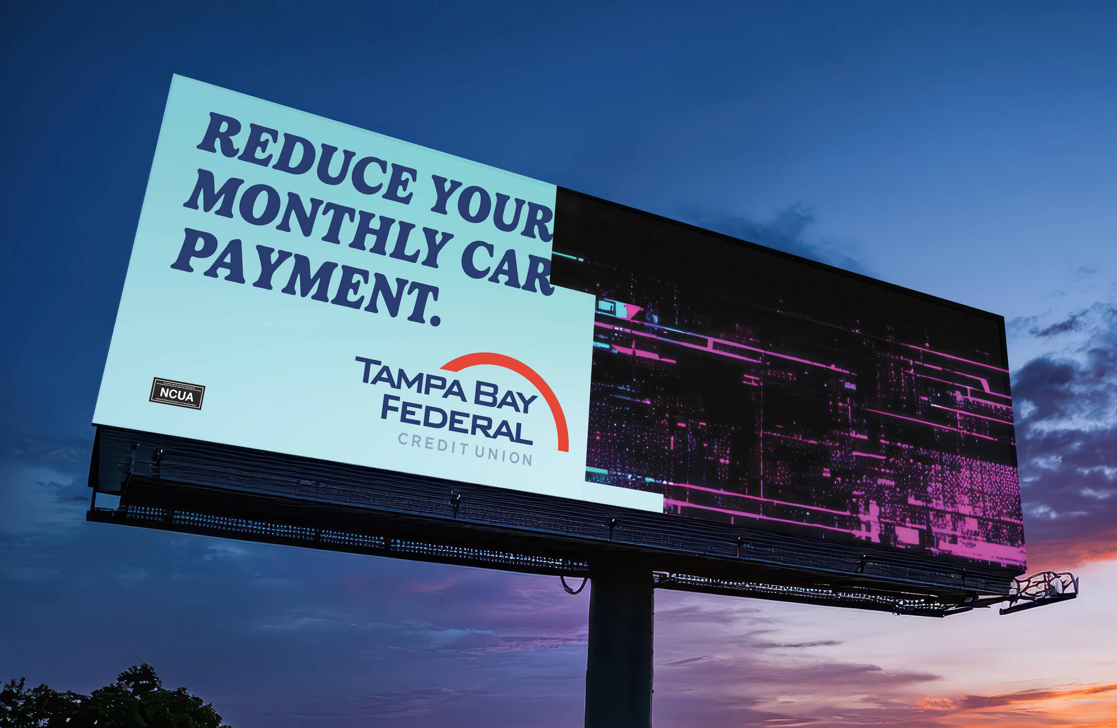 This professional campaign titled 'The Reduction Effect' was published in United States in October, 2025. It was created for the brand: Tampa Bay Federal Credit Union, by ad agency: RMBO. This OOH Outdoor medium campaign is related to the Finance industry and contains 4 media assets. It was submitted 4 months ago.