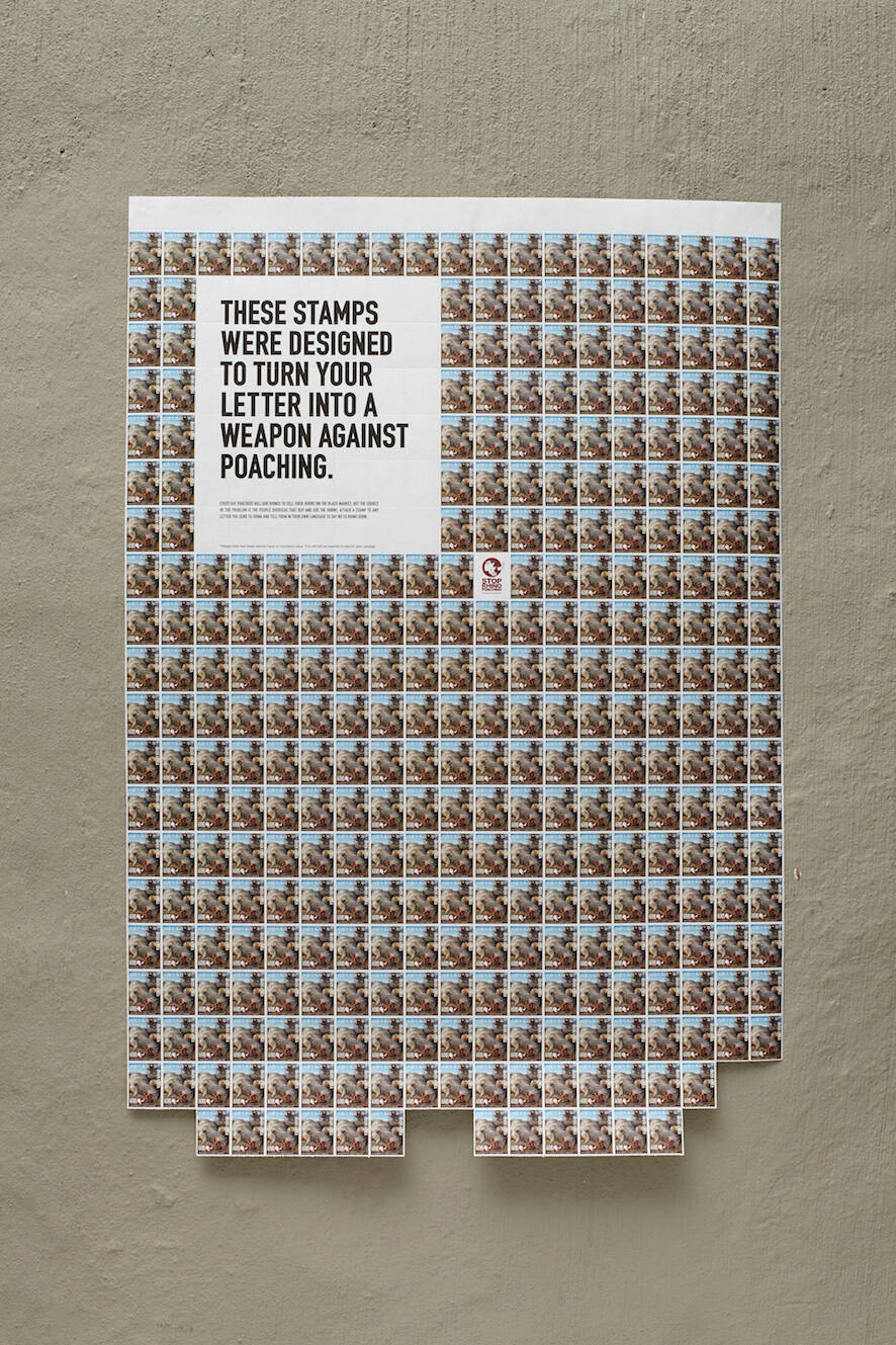 A campaign designed to invade borders. There are 27,431 rhinos left in the world. South Africa is home to 75% of them. Their horns sell on the black market for more than $60000 per kilogram, to be ground and used as a hypothetical cure for cancer or a vitality tonic for the wealthy. South Africa faces a massive challenge, an almost impossible one, in protecting one of our national symbols, one of our big five. Despite abundant petitions and awareness campaigns, the numbers of our rhinos killed continue to soar. We needed to find a way to talk directly to those responsible for creating the demand and show them what they were doing. So we reinvented age-old postage stamps and turned them into our new medium. But they aren’t ordinary stamps. The usual breathtaking imagery of our animals has been replaced by the carnage that poachers leave behind. Each stamp includes a message in Chinese, Vietnamese or Thai reading: “say no to rhino horn.” Letters with our stamps on them, will not only be sent straight to the perpetrators, but will also speak directly to them. We created a way to take the fight out of our vast bushveld and put it in the hands of those who are ultimately responsible. We then used our stamps to create posters that will be put up countrywide, rallying the South Africa public to attach one to all letters leaving our shores for China, Vietnam or Thailand. We have also created stamp booklets that will handed out used as inserts and direct mailers, making sure that each and every stamp sent becomes a direct mailer from us to them. We hope this campaign will start a serious conversation and will continue to do so during it’s roll out and so that we’ll see less of our rhinos being killed. The only way to end the slaughter is to end the demand.