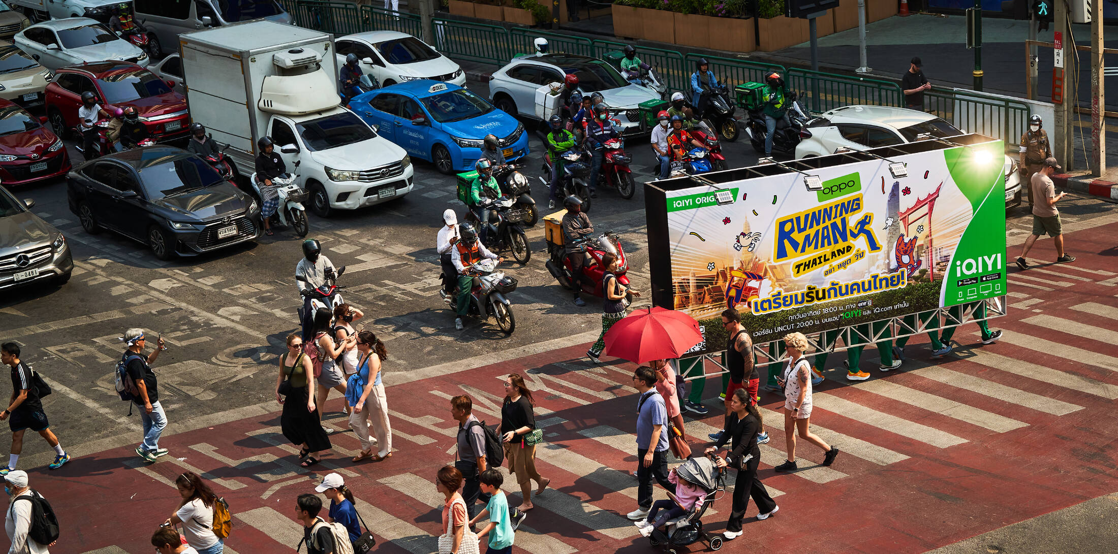 iQIYI Thailand brought Running Man to Thailand. In a city where billboards dominate every road and skyline, another static ad would simply blend into the background. So instead of placing the message in the city, it was sent through the city.