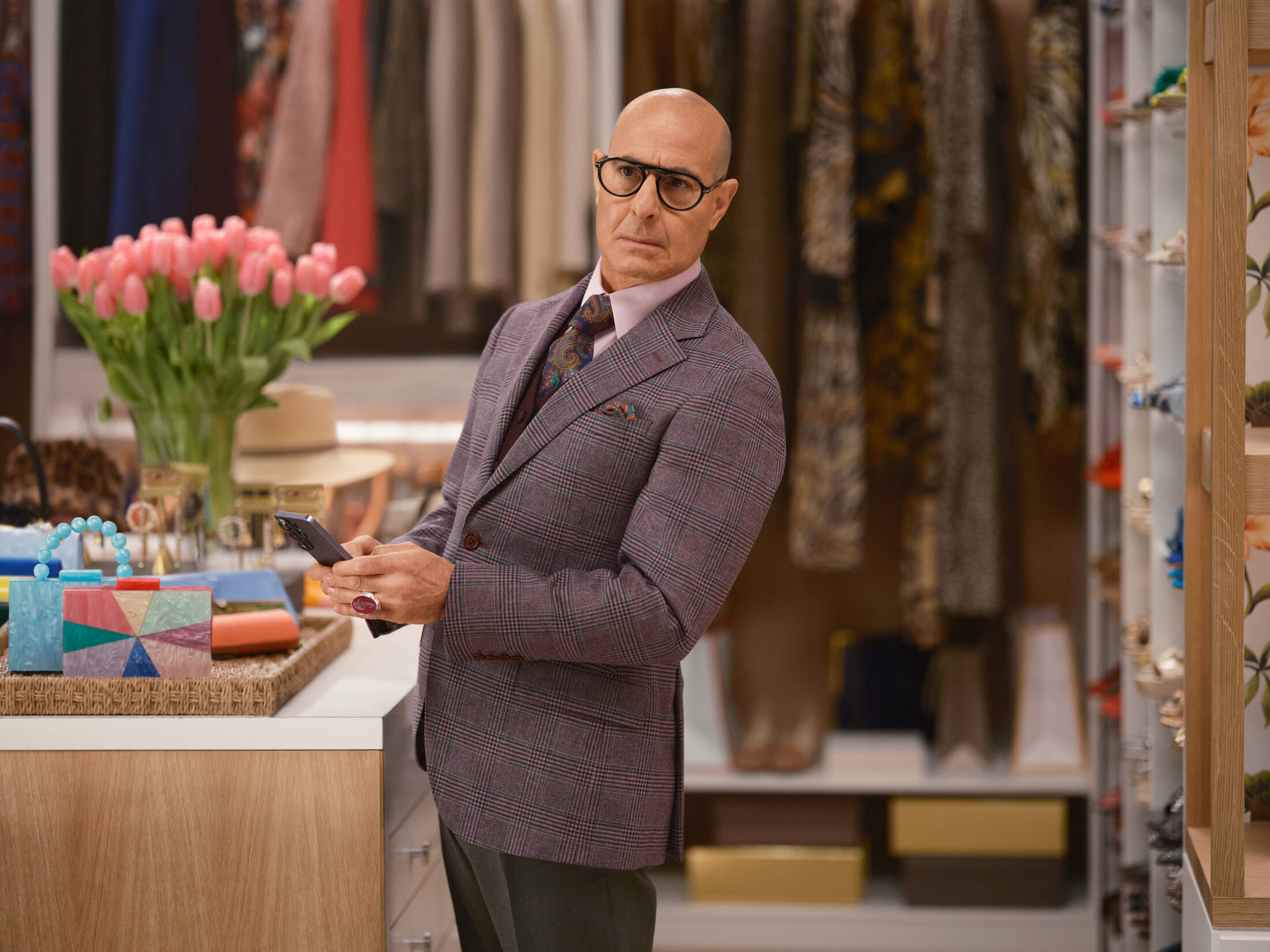 The creative showcases Simone Ashley and Stanley Tucci in their roles as Amari and Nigel in the RUNWAY closet, using Google’s Try On in Search to experiment with new styles to find Amari the perfect gown for an event.