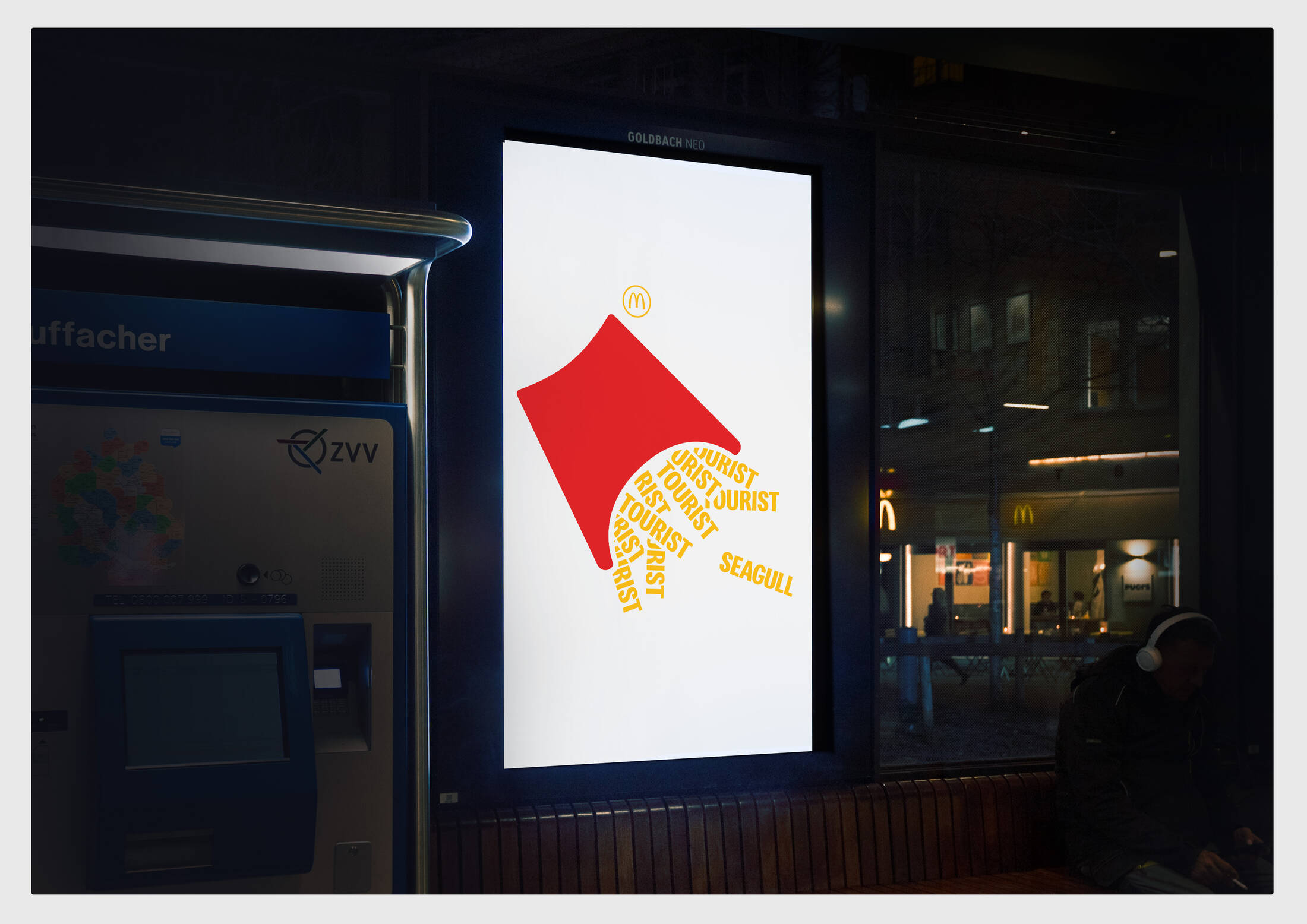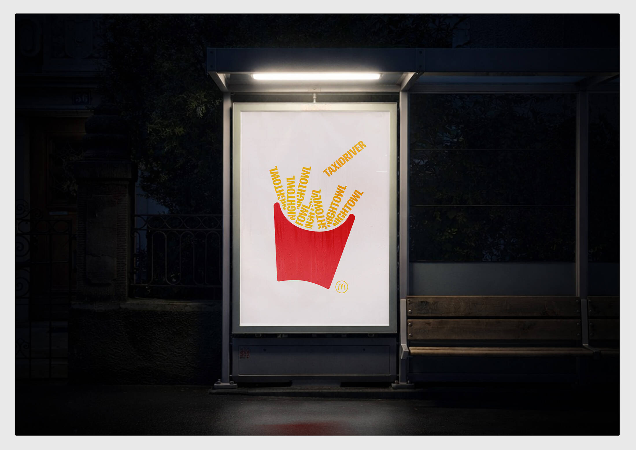 Based on this insight, we developed a poster campaign that replicates the typical scattering of fries, as they are ready to be enjoyed. Using a radically simple layout, each ad tells another story about someone craving a fry and daring to steal it – for example, a cheeky seabird or a taxi driver with a late-night hunger.