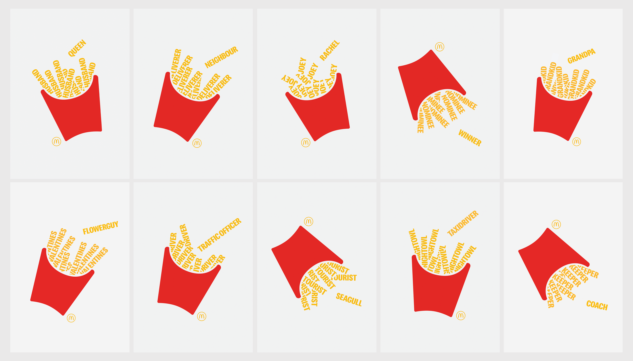 The motifs rely exclusively on form, color and repetition. Without any food shots, the campaign conveys a simple message that is as old as McDonald's itself: fries are irresistible.