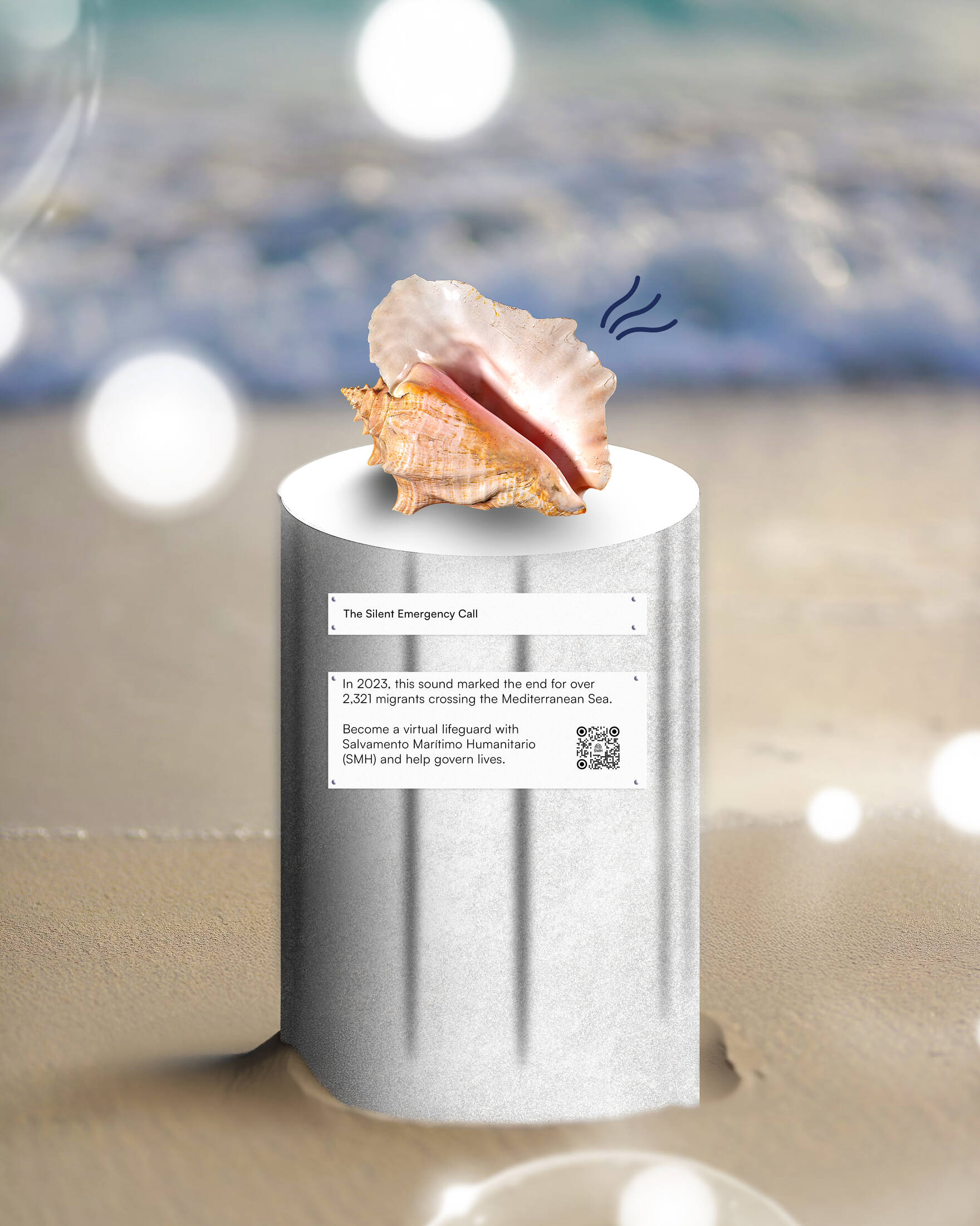 The campaign transforms the nostalgic sound of the conch shell into The Silent Emergency Call, symbolising the silence of thousands of migrants lost in the Mediterranean Sea every year. By giving the sound of the ocean a new meaning, we create a powerful sensory connection that inspires lifesaving action. To become a virtual lifeguard with SMH.