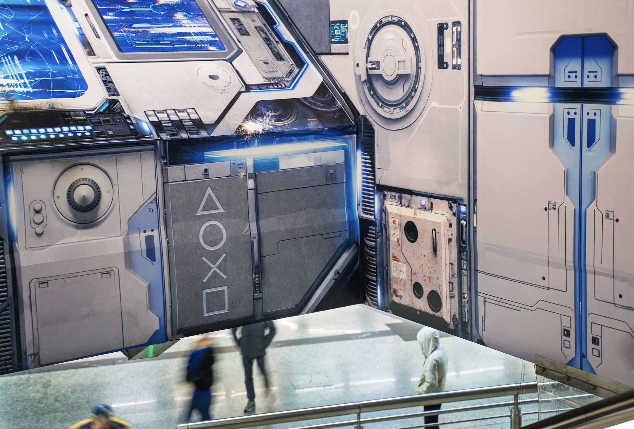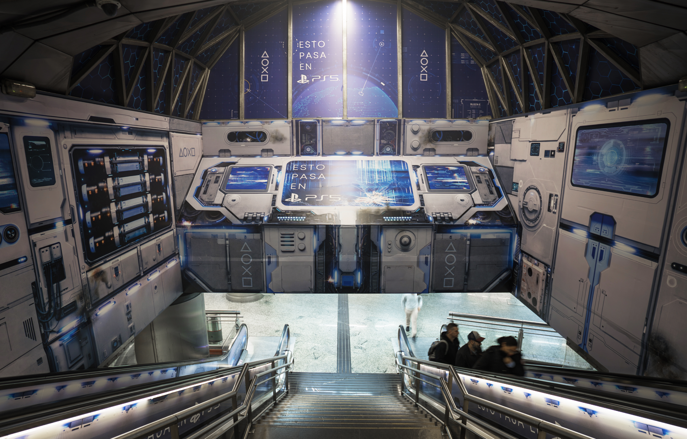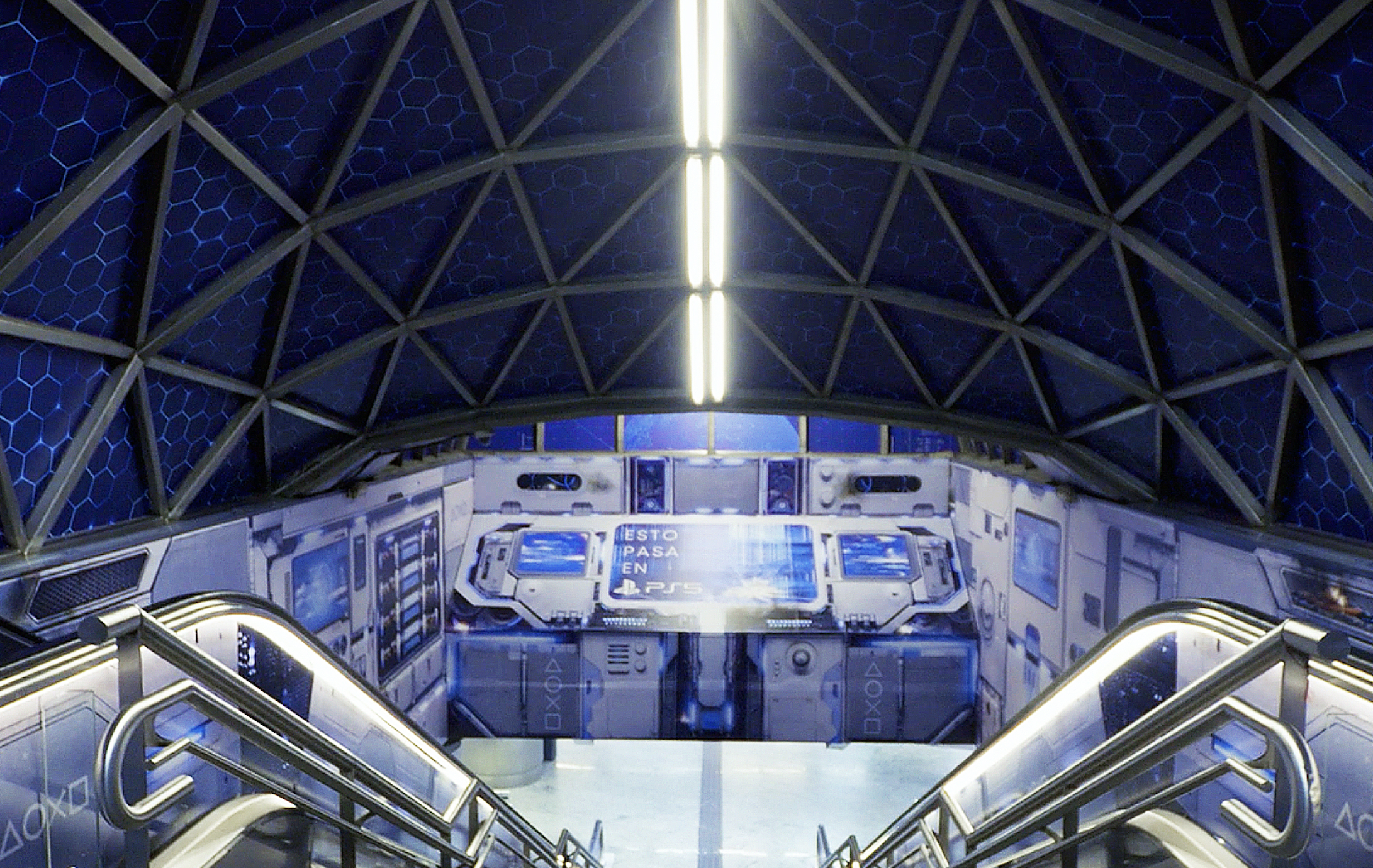 At CLV, we were responsible for “The spaceship that crashed in Sol”, an activation in the heart of Madrid’s Puerta del Sol and one of the most spectacular actions of the entire campaign. We transformed the iconic commuter station into a crashed spaceship straight out of the PlayStation universe. Both inside and out, the station became a wrecked spacecraft that astonished millions of people and marked the beginning of a transmedia narrative that connects fiction with reality.