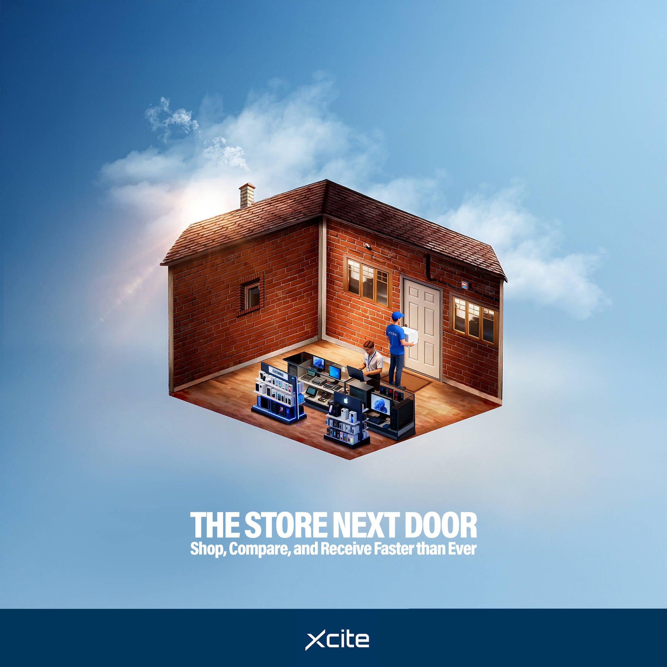 This creative approach emphasizes convenience, speed, and accessibility, showing that Xcite brings the full electronics-shopping experience directly to you, without ever needing to step outside.