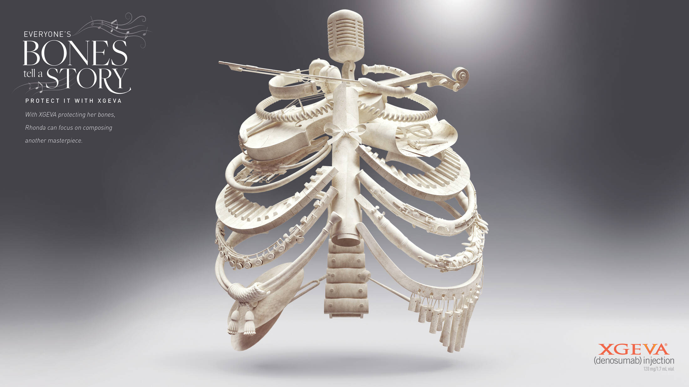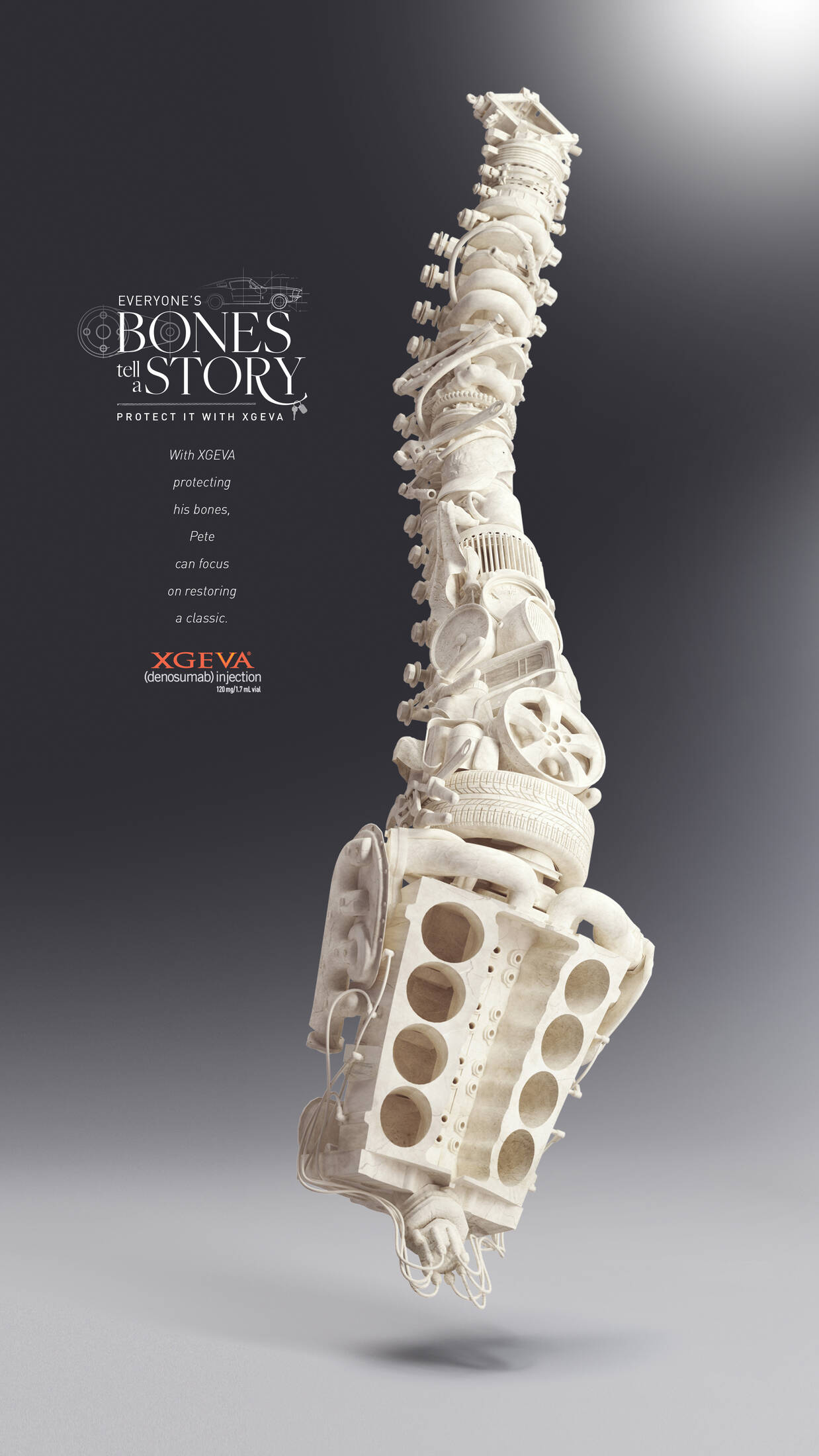 This professional campaign titled 'The Story in their Bones' was published in United States in April, 2022. It was created for the brand: Xgeva, by ad agency: GSW. This Print medium campaign is related to the Pharmaceutical industry and contains 3 media assets. It was submitted over 3 years ago by SVP, Group Creative Director: Mike McKeever of GSW.