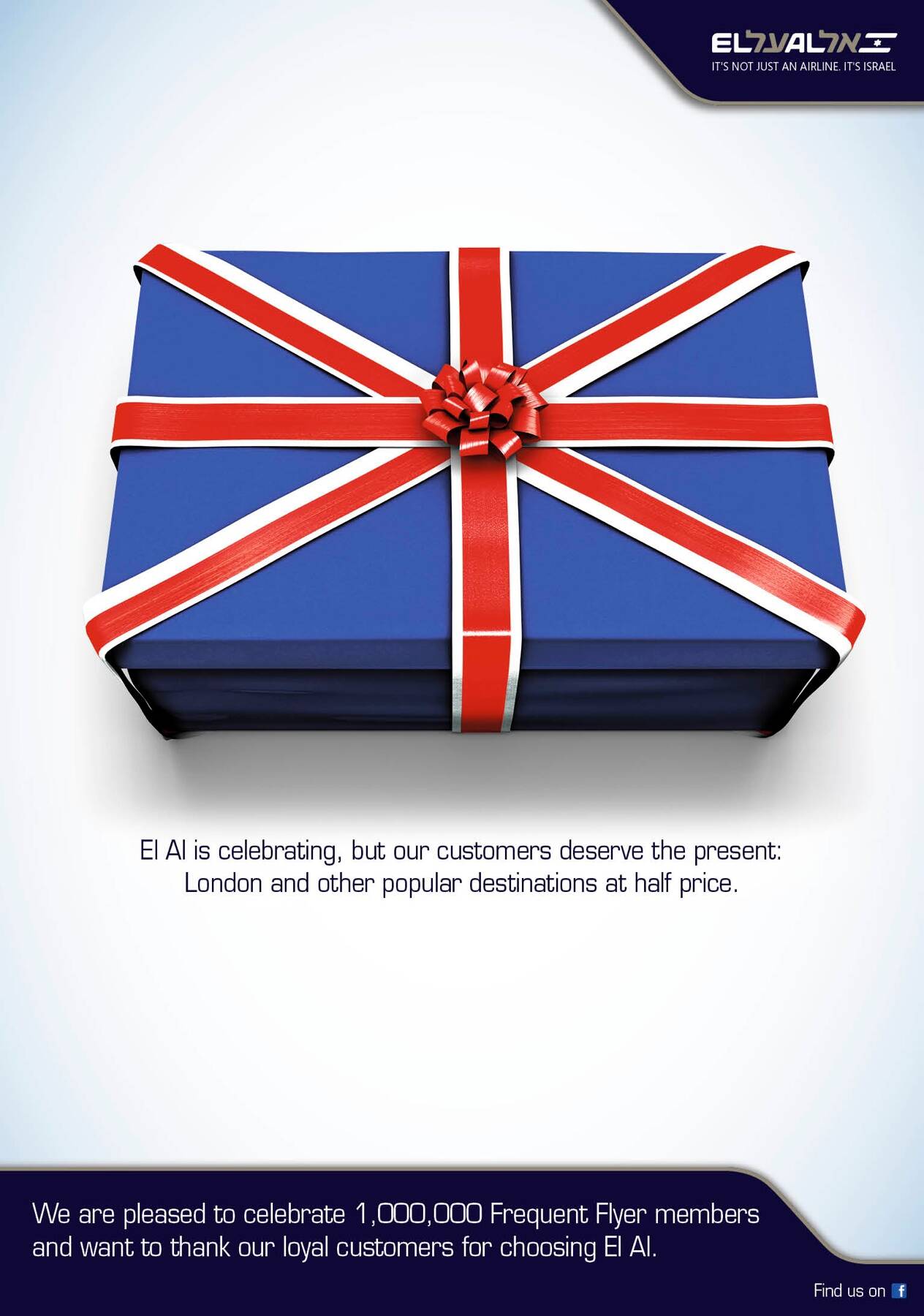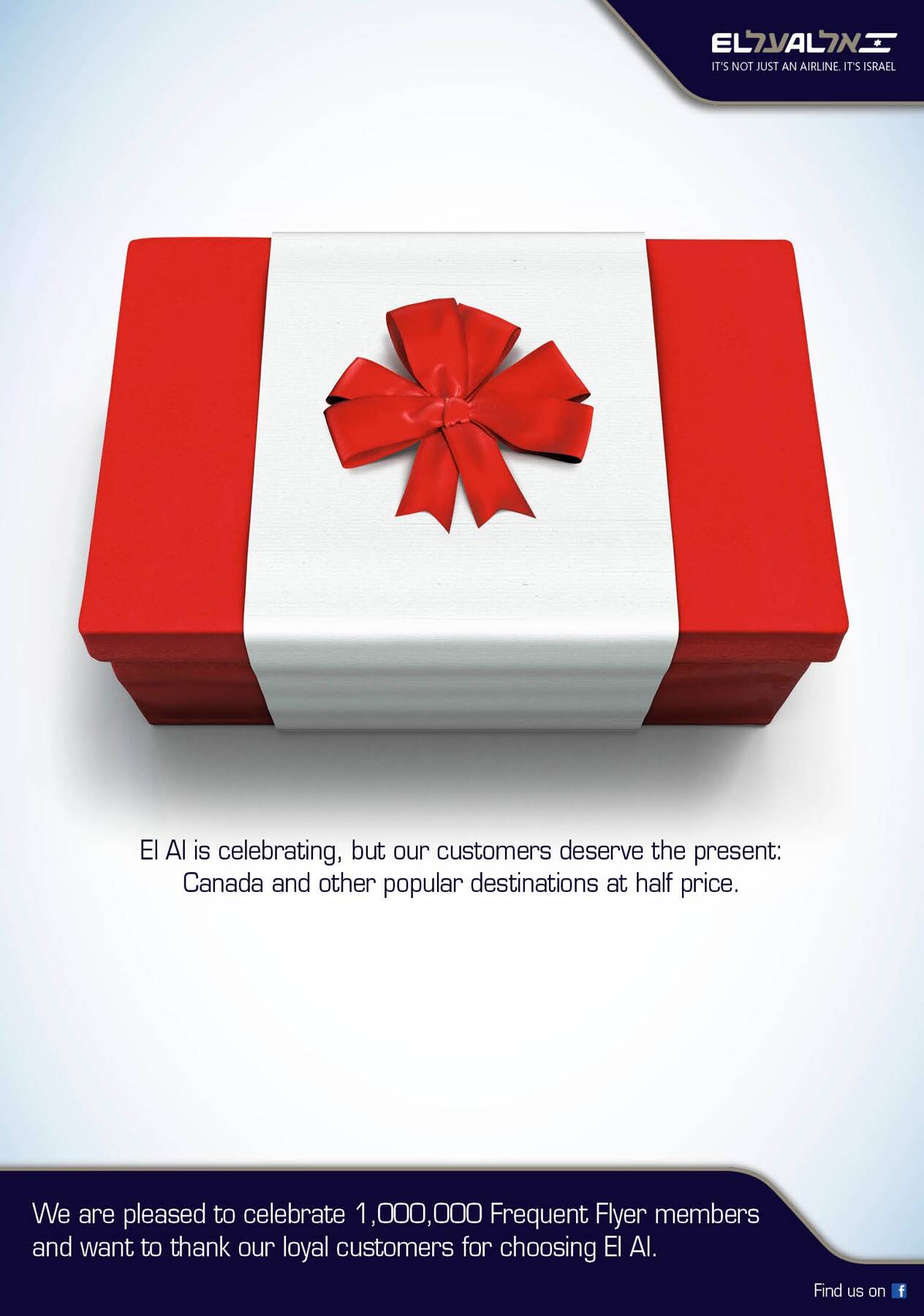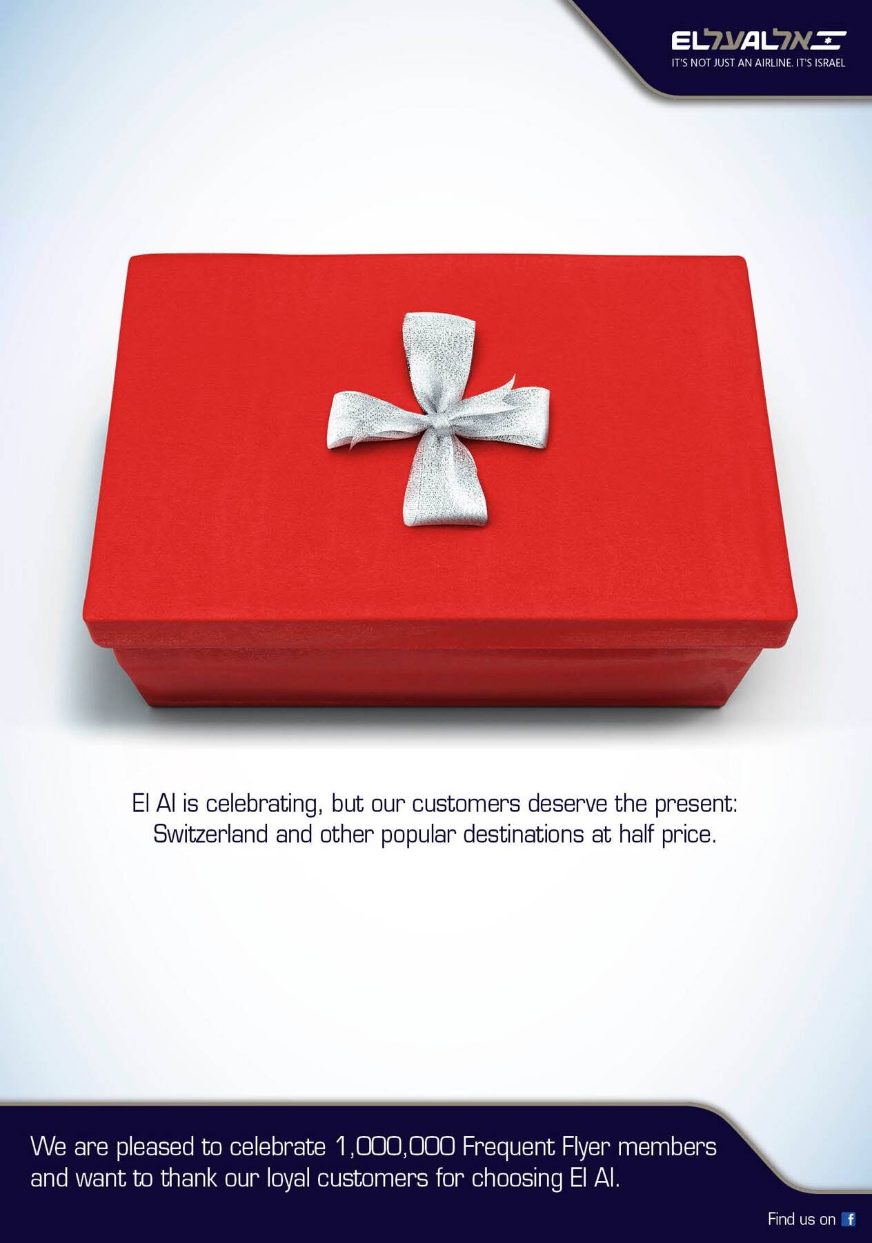 This professional campaign titled 'The Switzerland Present, The Canada Present, The London P...' was published in Israel in December, 2012. It was created for the brand: EL AL, by ad agency: McCann. This OOH Outdoor medium campaign is related to the Transport industry and contains 3 media assets. It was submitted almost 13 years ago.