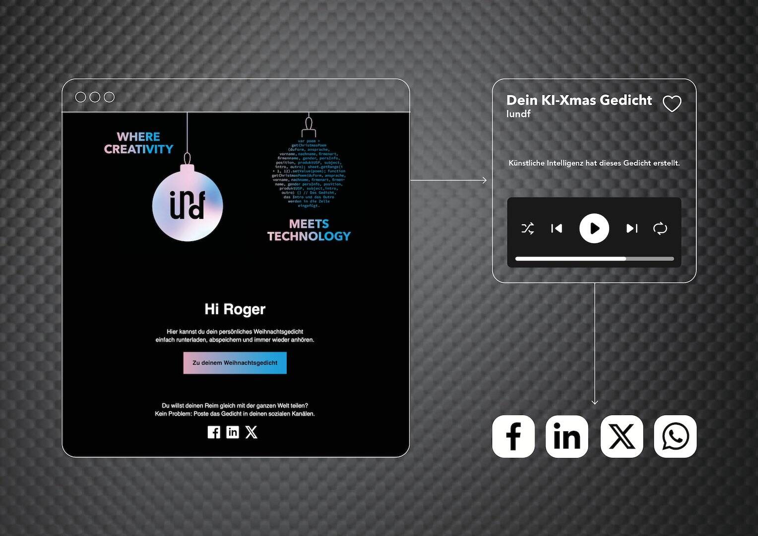 Festively packaged, the talking Christmas cards landed in over 500 letterboxes in Switzerland, Germany and Austria shortly before the big holiday. As soon as they were opened, the personalized poem rang out. A follow-up email directed everyone to a landing page where they could download their personalized poem and share it on social media or via WhatsApp, which over 80 percent of people did.