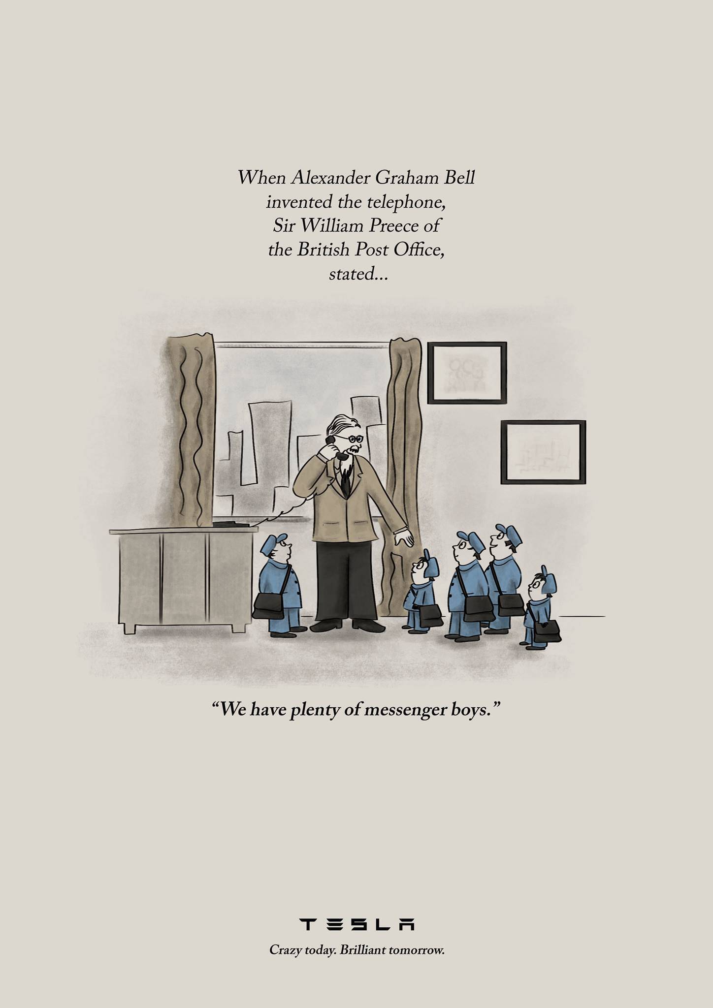 This student campaign titled 'The telephone, The plane, The automobile' was published in United States in July, 2016. It was created for the brand: Tesla, by ad school: Miami Ad School. This Print medium campaign is related to the Automotive and Personal Transportation industry and contains 3 media assets. It was submitted over 9 years ago.