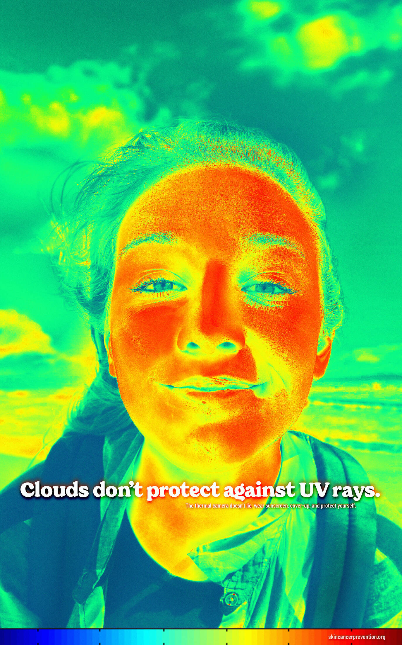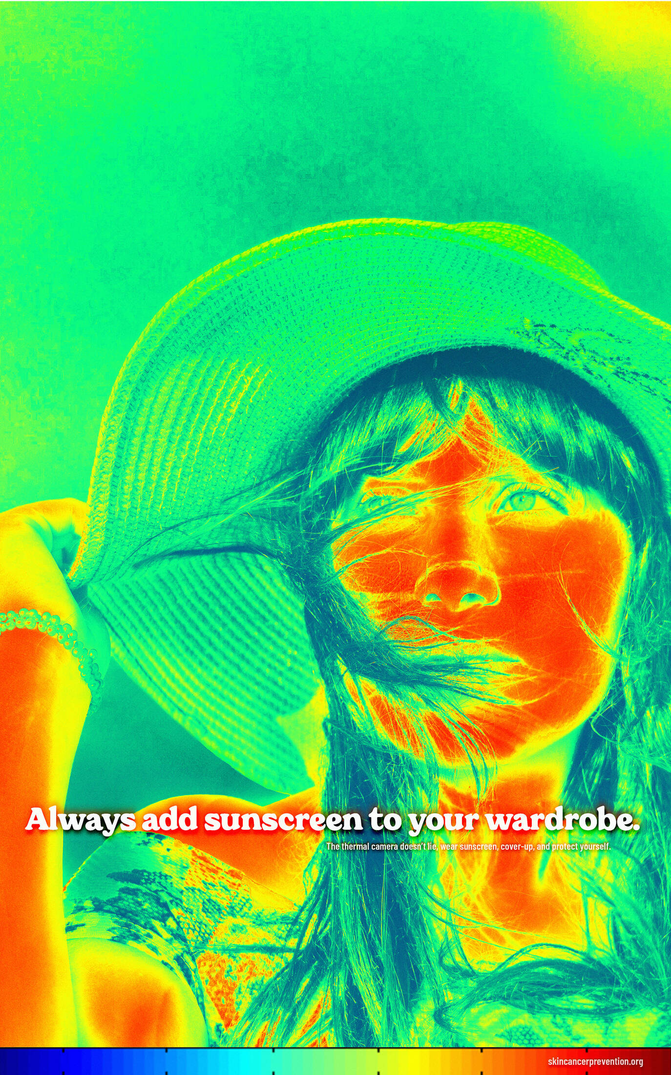 This professional campaign titled 'The thermal camera doesn't lie.' was published in United States in June, 2024. It was created for the brand: National Skin Cancer Awareness, by ad agency: Boundless Life Sciences Group. This Digital, Experiential, and OOH Outdoor media campaign is related to the Health and Public Interest industries and contains 3 media assets. It was submitted over 1 year ago by ECD: Craig Mikes of Whiskey, Texas.