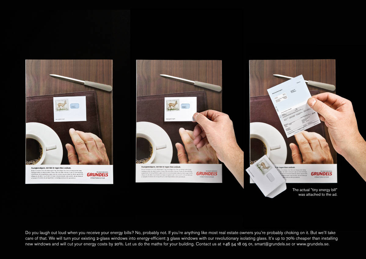 This professional campaign titled 'The Tiny Energy Bill' was published in Sweden in October, 2009. It was created for the brand: Grundels, by ad agency: Clara. This Static Images medium campaign is related to the Industrial industry and contains 1 media asset. It was submitted about 16 years ago.