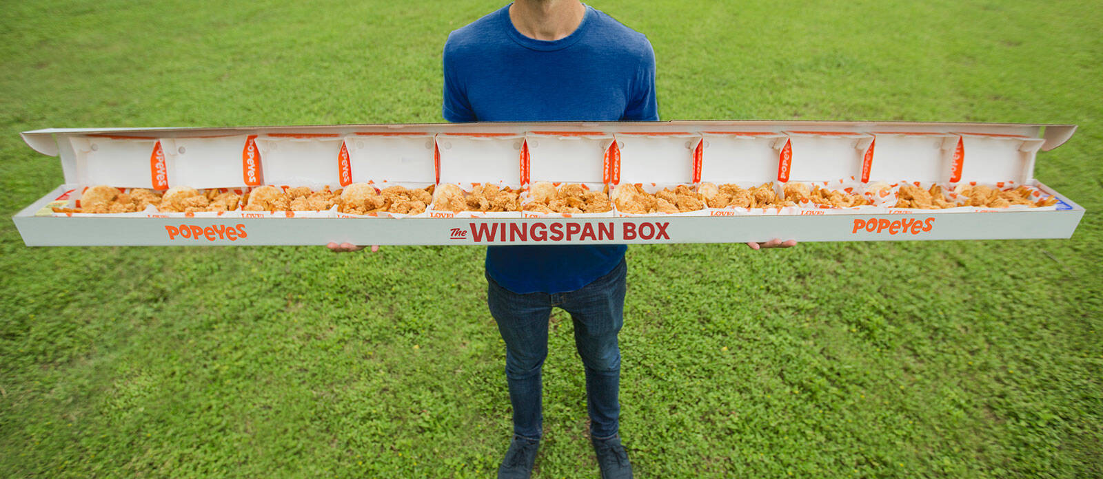 This professional campaign titled 'The Wingspan Box' was published in United States in June, 2019. It was created for the brand: Popeyes, by ad agency: GSD&M. This Design medium campaign is related to the Food industry and contains 4 media assets. It was submitted over 6 years ago.