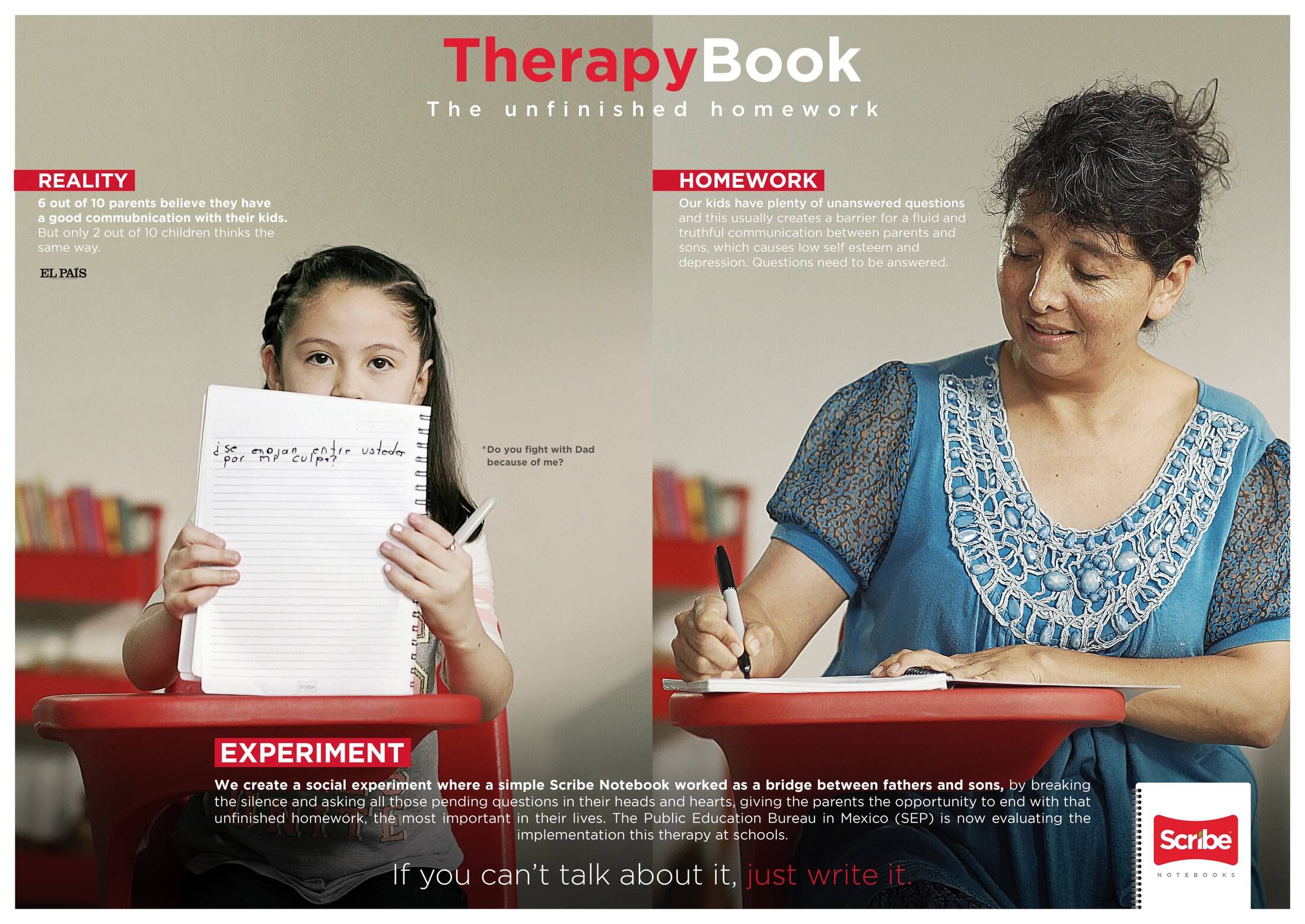 This professional campaign titled 'Therapy Book' was published in Mexico in May, 2019. It was created for the brand: Scribe, by ad agency: Archer Troy. This Experiential medium campaign is related to the Electronics, Technology and Professional Services industries and contains 2 media assets. It was submitted over 6 years ago.