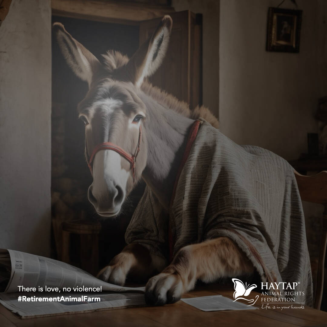 In visual studies produced with artificial intelligence, farm animals are shown to be in classic retirement modes. The main purpose of the project, which depicts farm animals reading books, solving puzzles in the newspaper, enjoying coffee or spending long hours in front of the TV; To raise awareness that there is such an opportunity for aging or injured farm animals in Turkey.