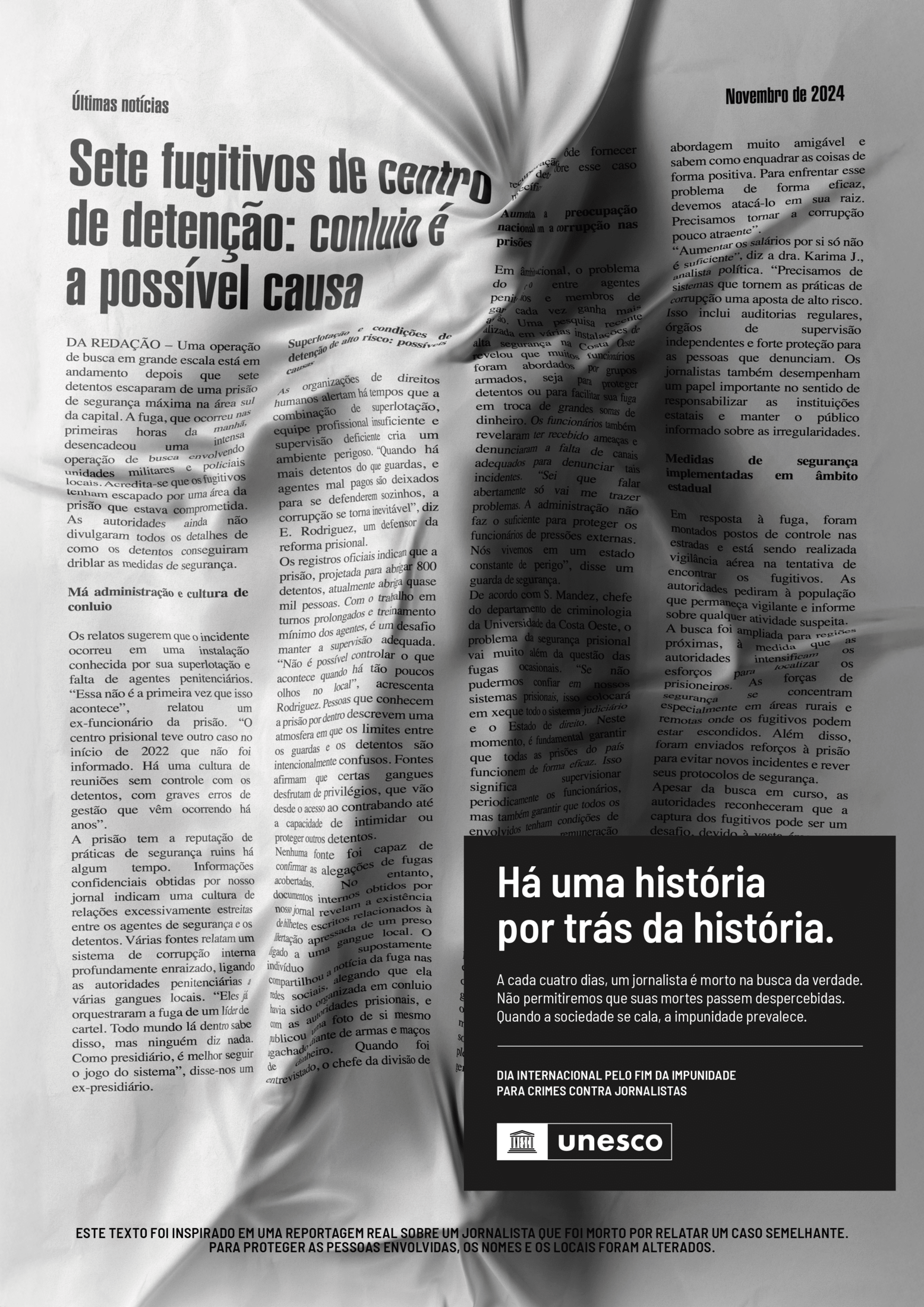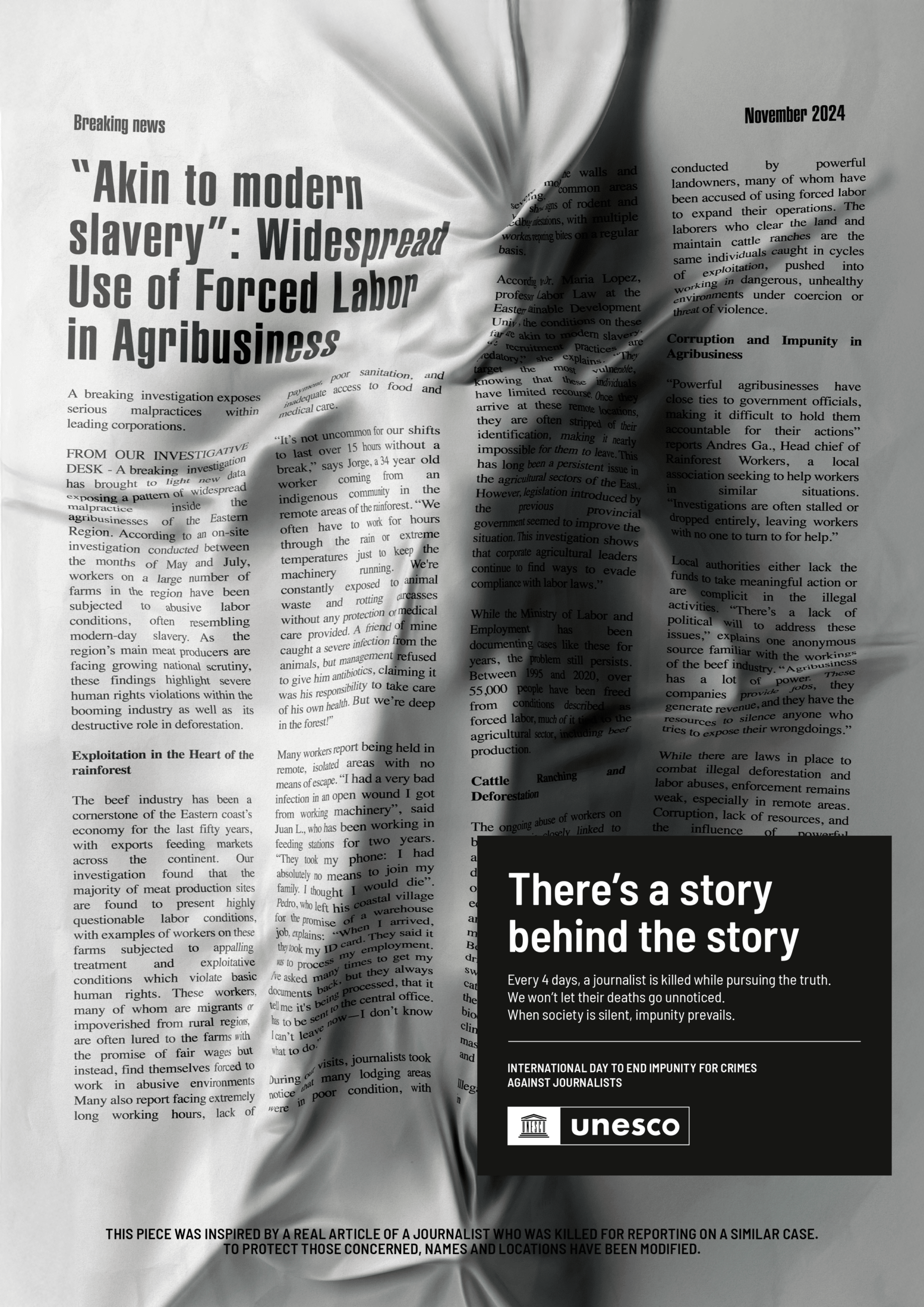 This professional campaign titled 'There's a story behind the story' was published in Brazil, Mexico, and Multinational Europe in November, 2024. It was created for the brand: UNESCO, by ad agency: Altavia.pixel. This Digital, OOH Outdoor, and Print media campaign is related to the Other and Public Interest industries and contains 4 media assets. It was submitted about 1 year ago by Diego Madroño of Altavia Pixel and Pixel.