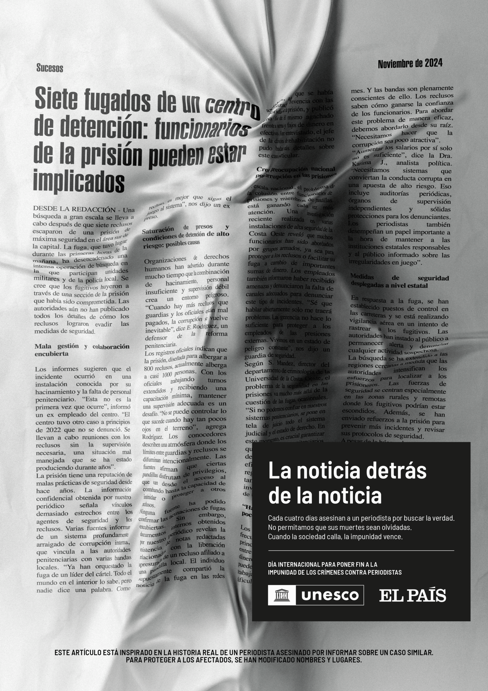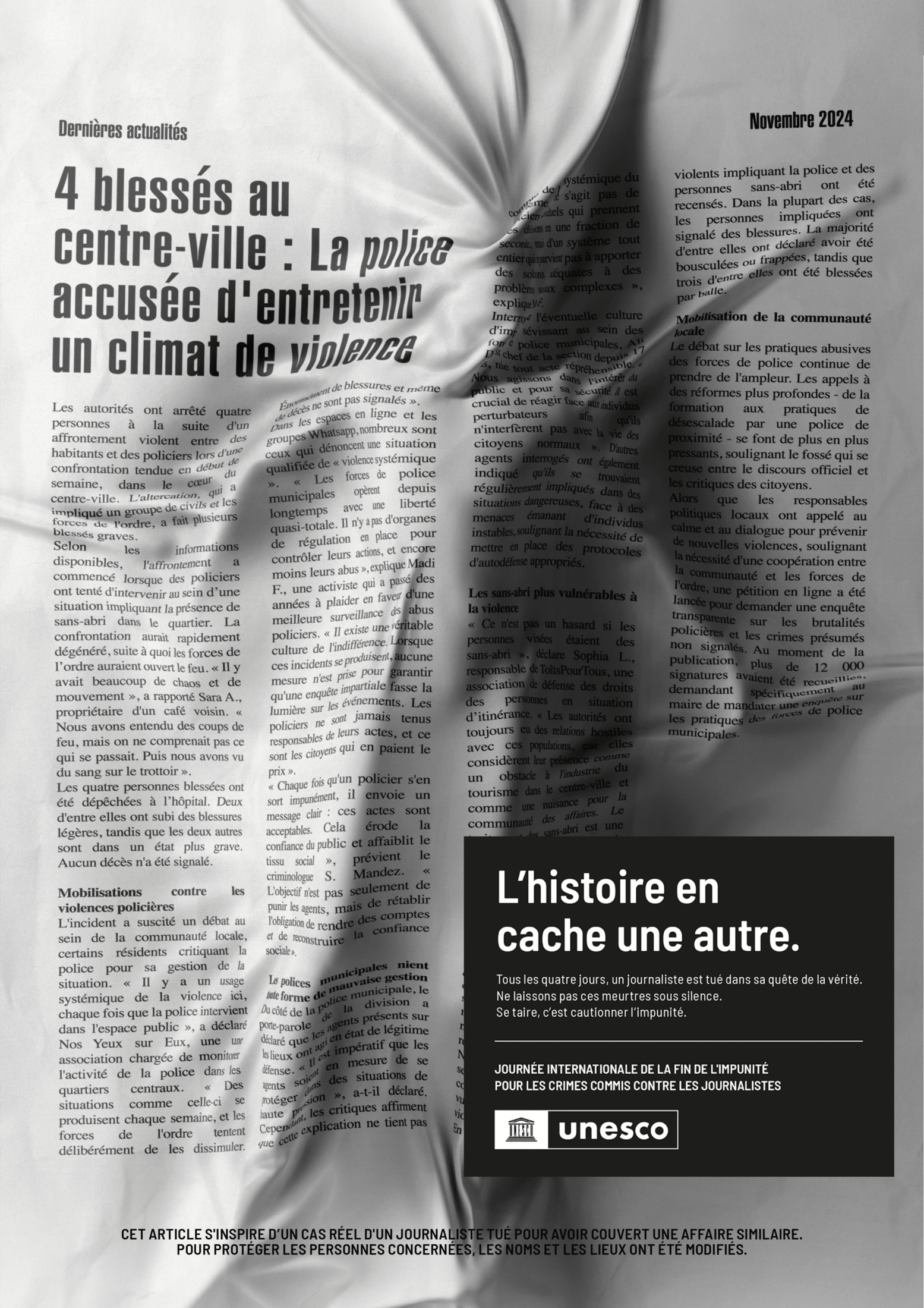 On November 2, International Day to End Impunity for Crimes against Journalists, we wanted to tell how impunity covers up the truth and makes it invisible to society. That is why we covered the corpses of murdered journalists with news inspired by the stories they themselves wrote, the ones they were killed for.