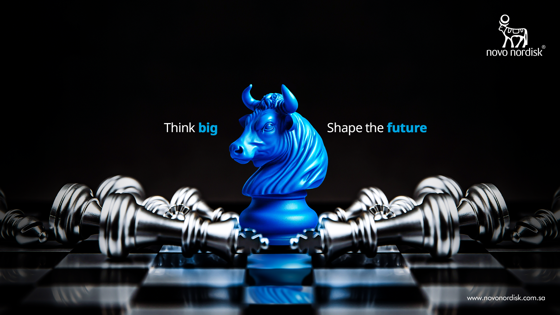 It is known that the Novo Nordisk logo is adapted from the Ancient Egyptian Holy Bull (APIS) Therefore, I modelled the logo and turned it into a piece of chess, as if it were a new piece that would compete hard with the Saudi medical market.
