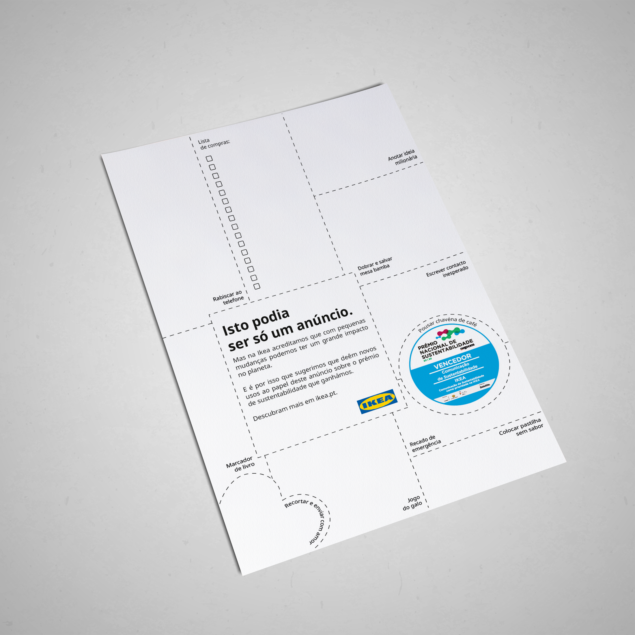At IKEA, giving products a second life is a common practice. That's why we created a print to be reused and gain many second lives. This print is also a shopping list, a piece of paper to wrap the flavourless bubble gum, the salvation of a wobbly table or a coaster to avoid staining the living room table.