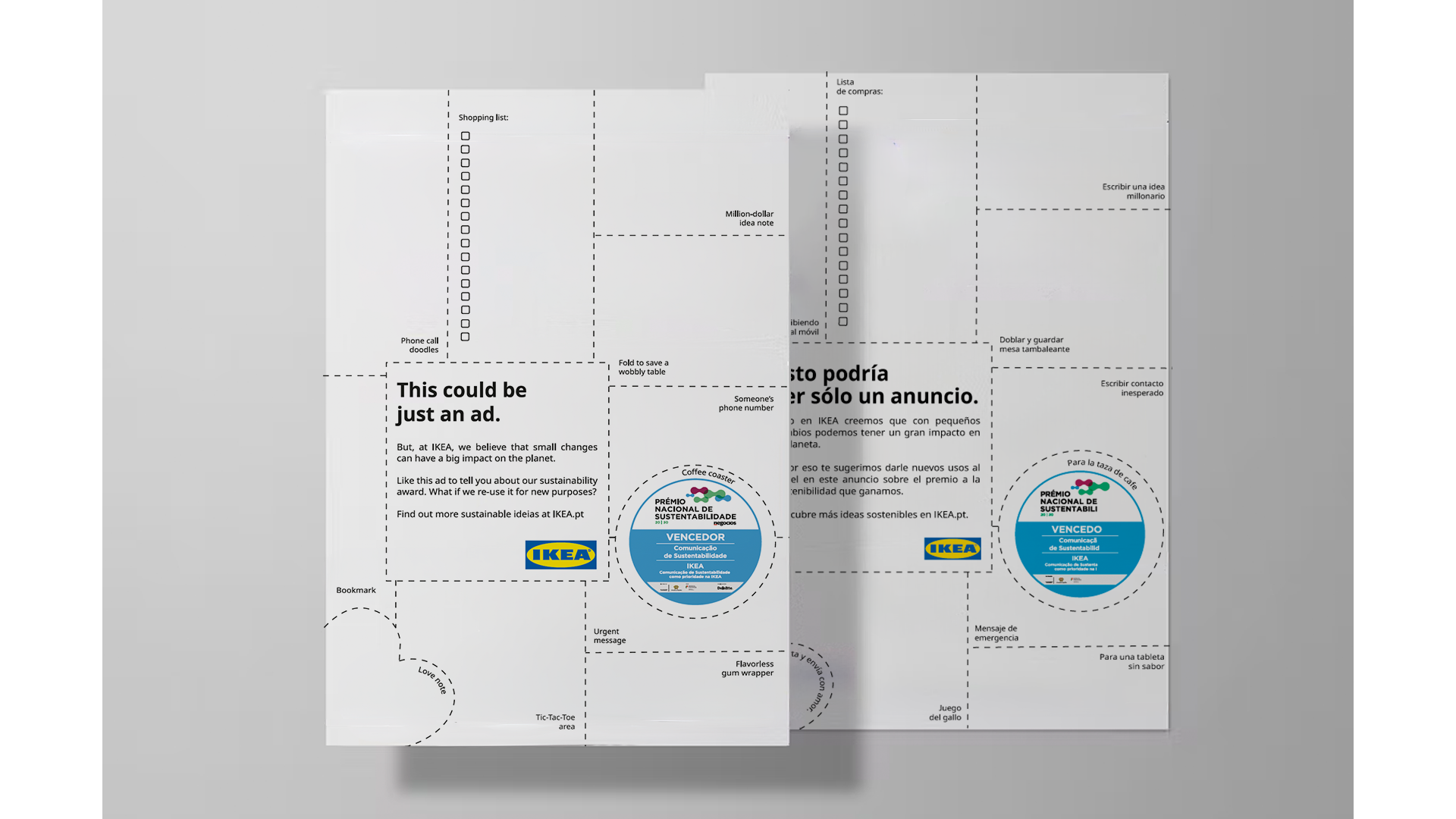 This professional campaign titled 'This could be just an ad' was published in Portugal in November, 2021. It was created for the brand: IKEA, by ad agency: Uzina. This Print medium campaign is related to the Retail Services industry and contains 3 media assets. It was submitted over 2 years ago.