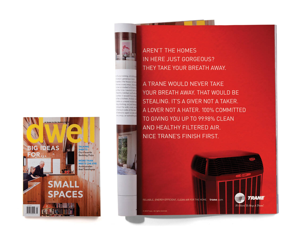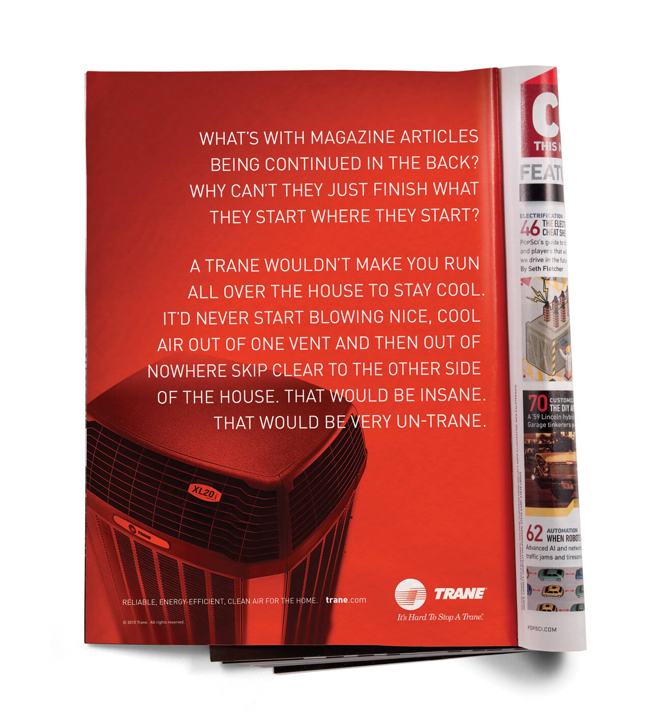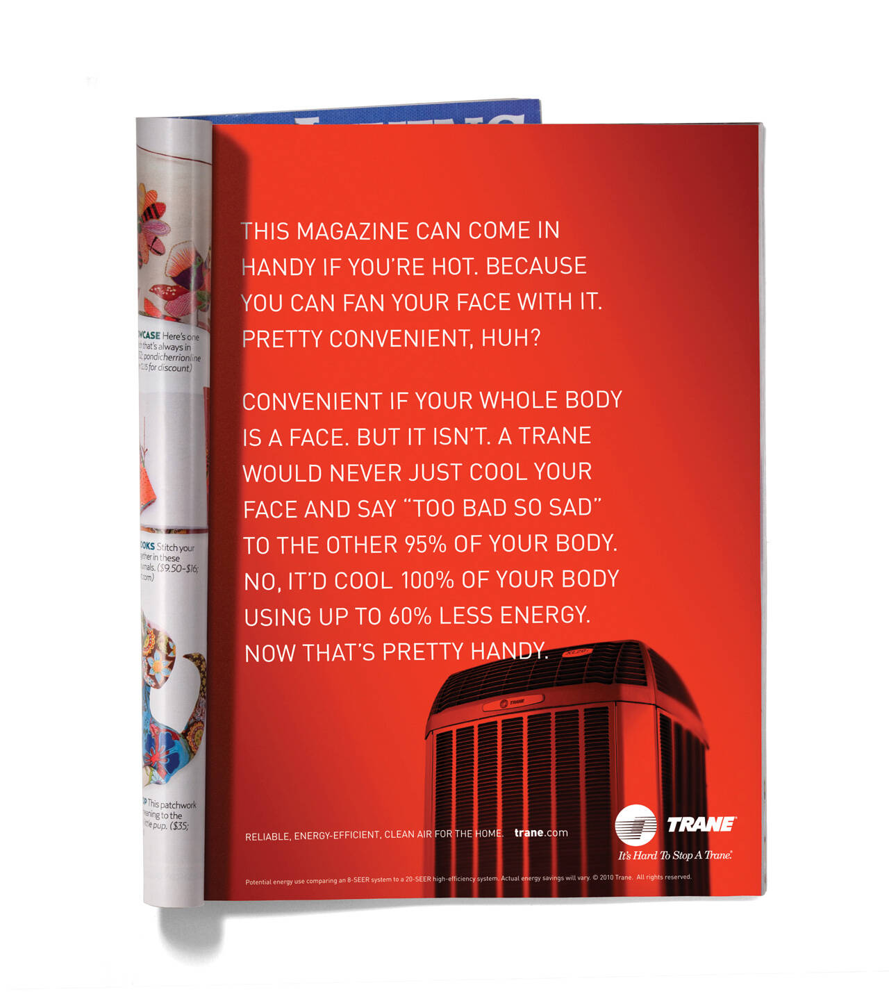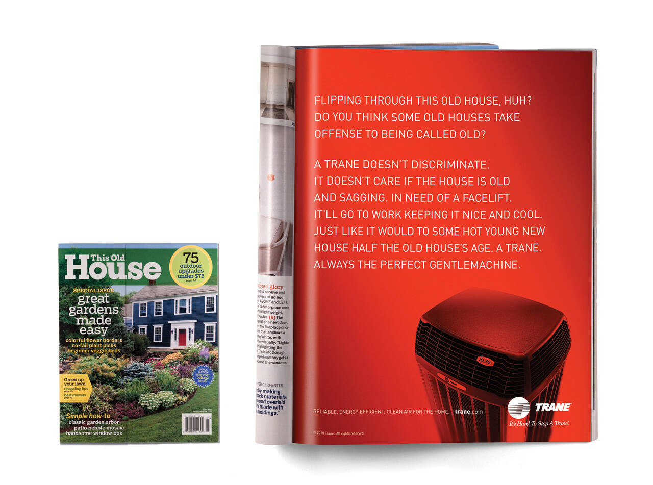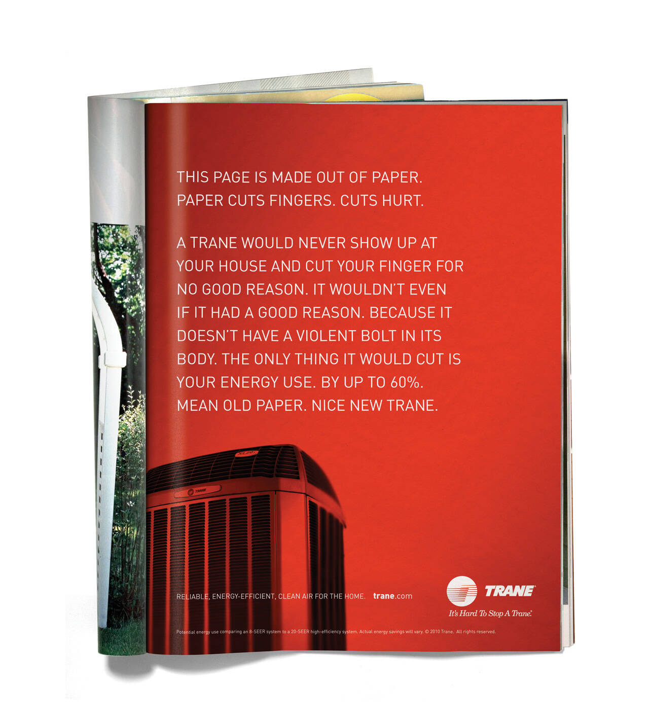 This professional campaign titled 'This Old House, Tech Marvels, Take Breath Away, Paper Cut...' was published in United States in May, 2010. It was created for the brand: Trane, by ad agency: Carmichael Lynch. This Print medium campaign is related to the Electronics, Technology industry and contains 8 media assets. It was submitted over 15 years ago.